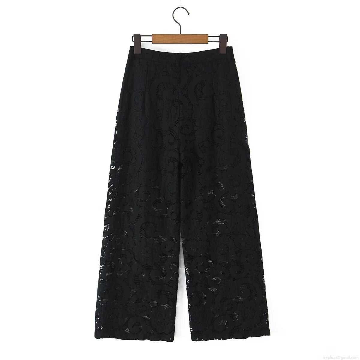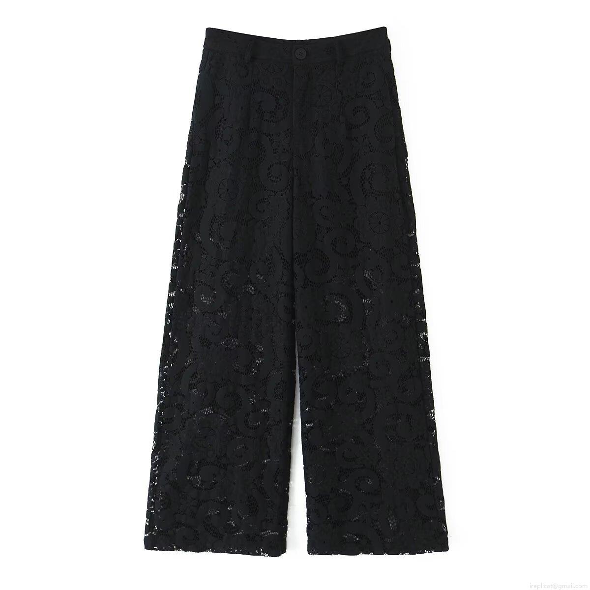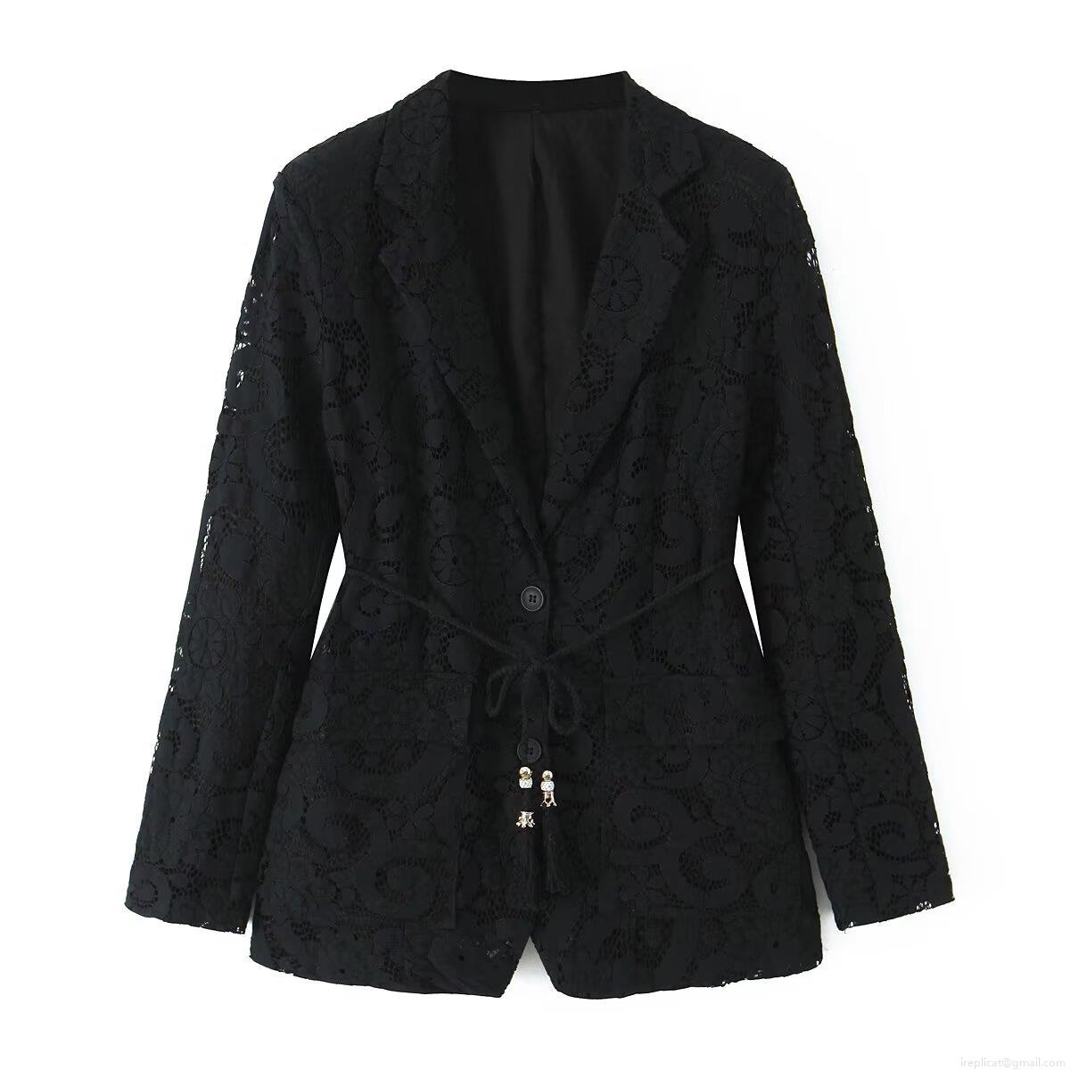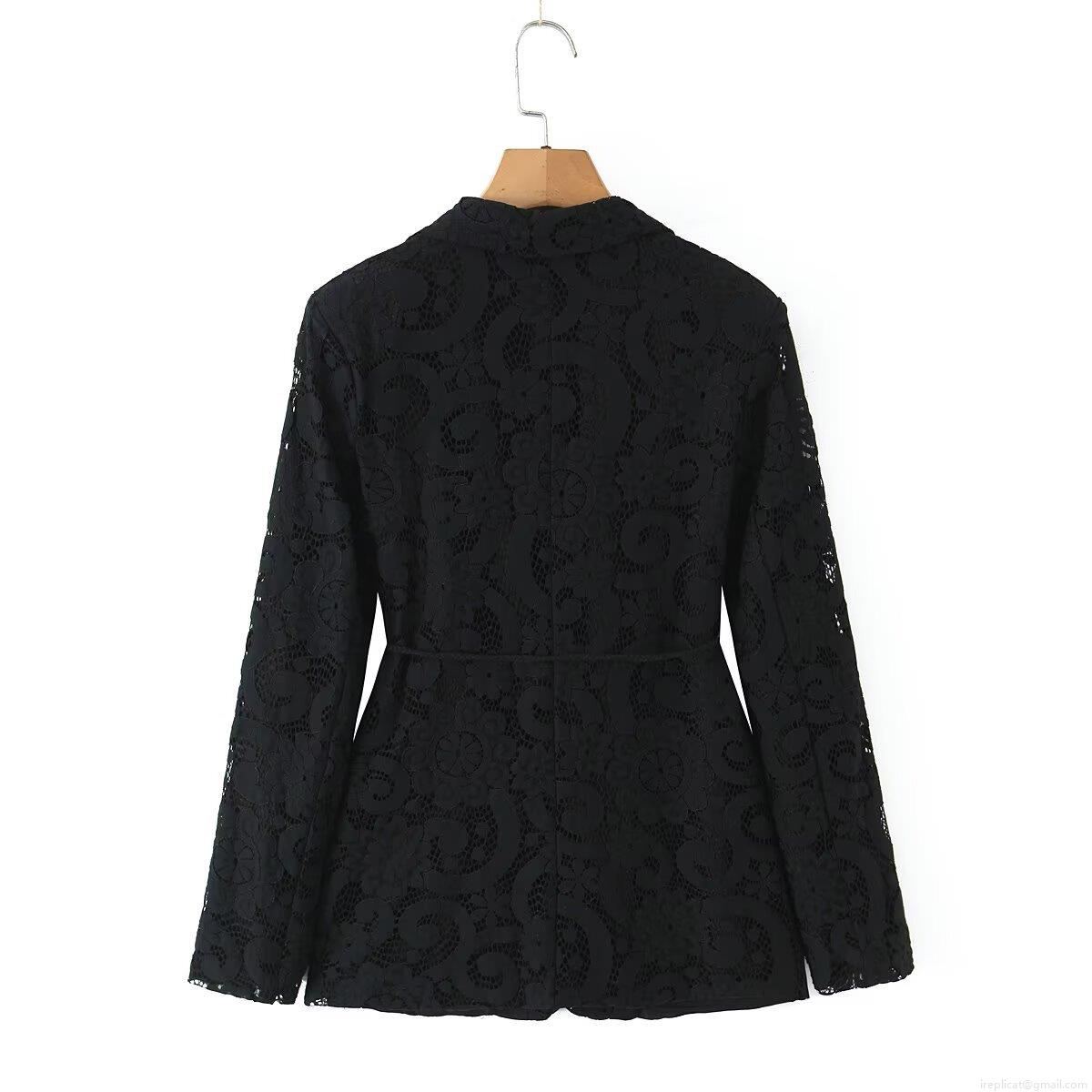 • Women Sexy Black Floral Lace Blazer and Wide Leg Pants Two Piece Set with Handwoven Belt Elegant Hollow Out Streetwear Outfits for Women