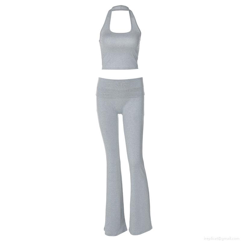 • Women Sexy Halter Backless Vest And High Waist Flare Pants Set 2 Piece Outfits Streetwear Slim Fit Polyester Spandex Summer Suits