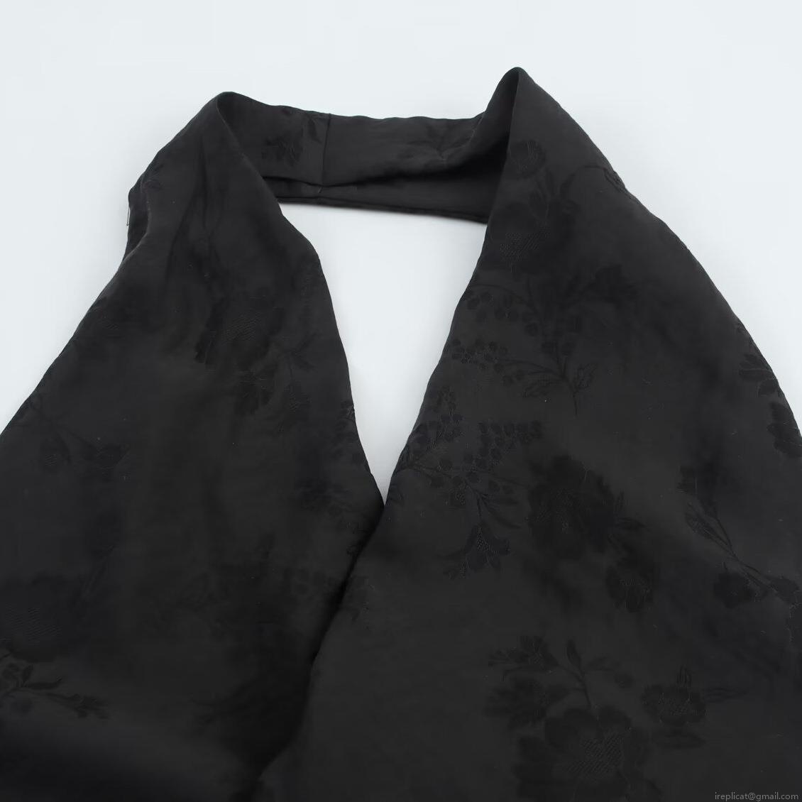 Jacquard, Pleats, Flowers, Neckband, Backless, Wide-leg, High-waisted, Dark Pattern