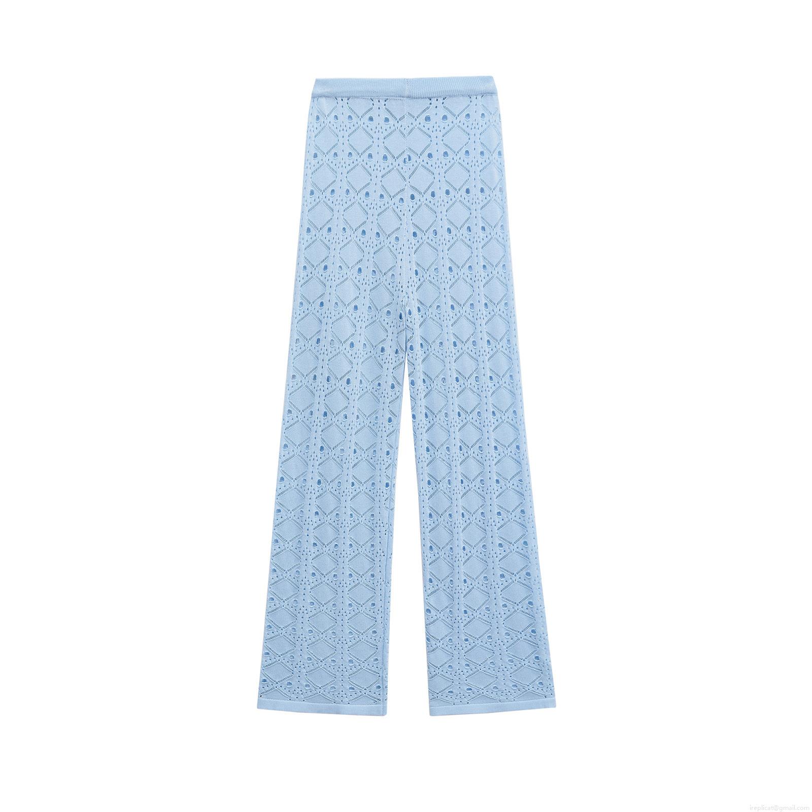 • Women Sexy Knit Two Piece Set Hollow Out Knitted Tube Top And Wide Leg Trousers Summer Beach Party Outfit Slim Fit Ribbed Knit Set For Women