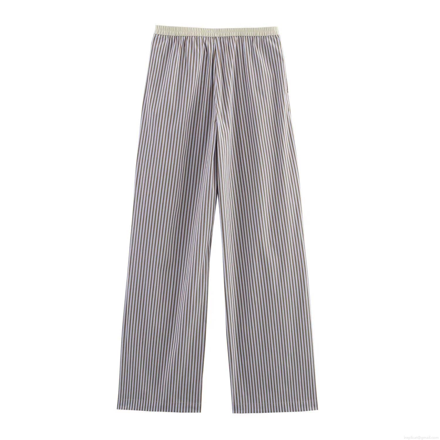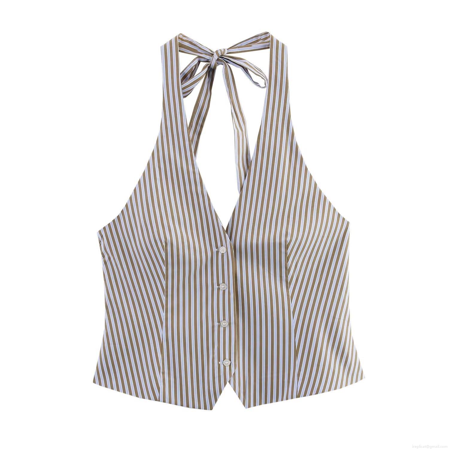 • Women Striped Halter Top And Wide Leg Pants Set Poplin Polyester Blend Sleeveless Backless Summer Casual Two Piece Outfits For Women