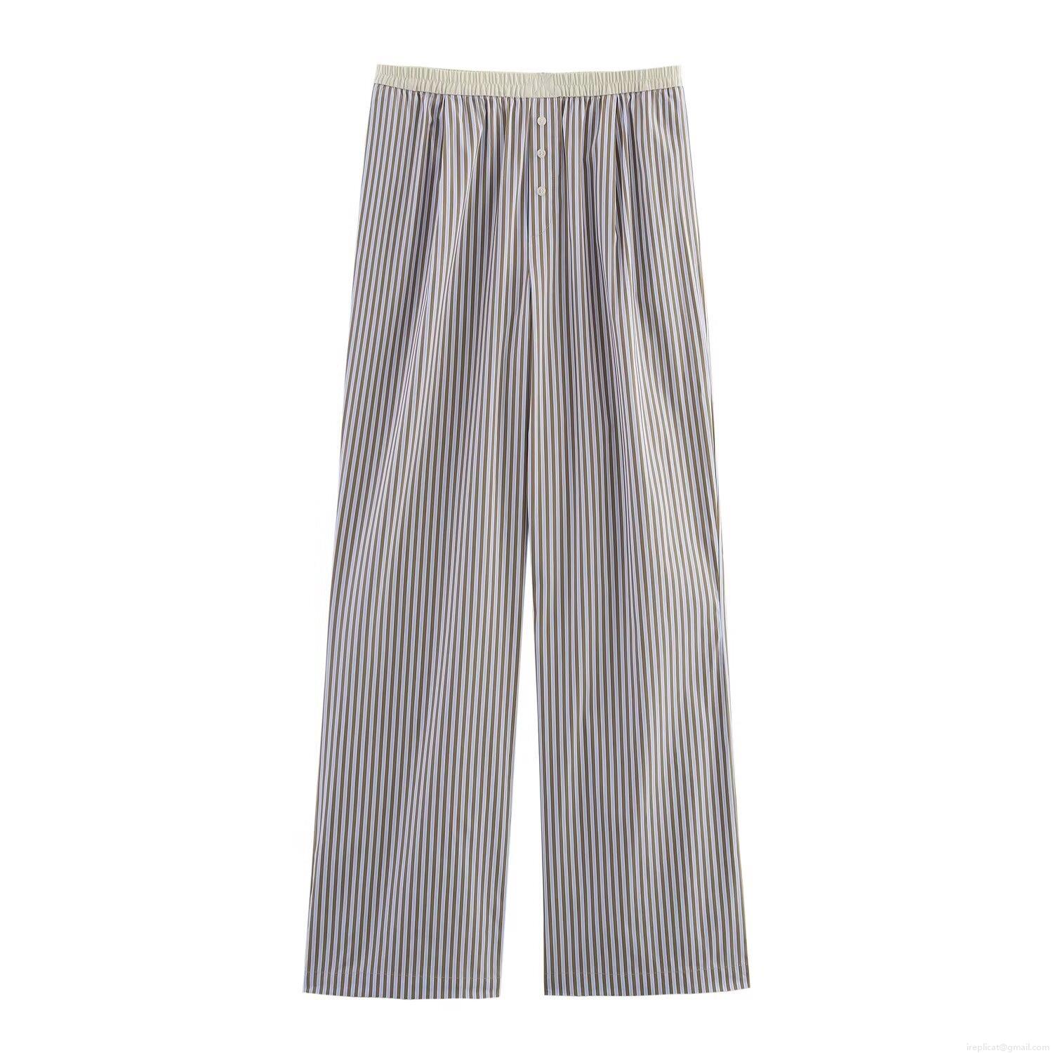 Stripe, Neckband, Backless, Wide-leg, Button Decoration