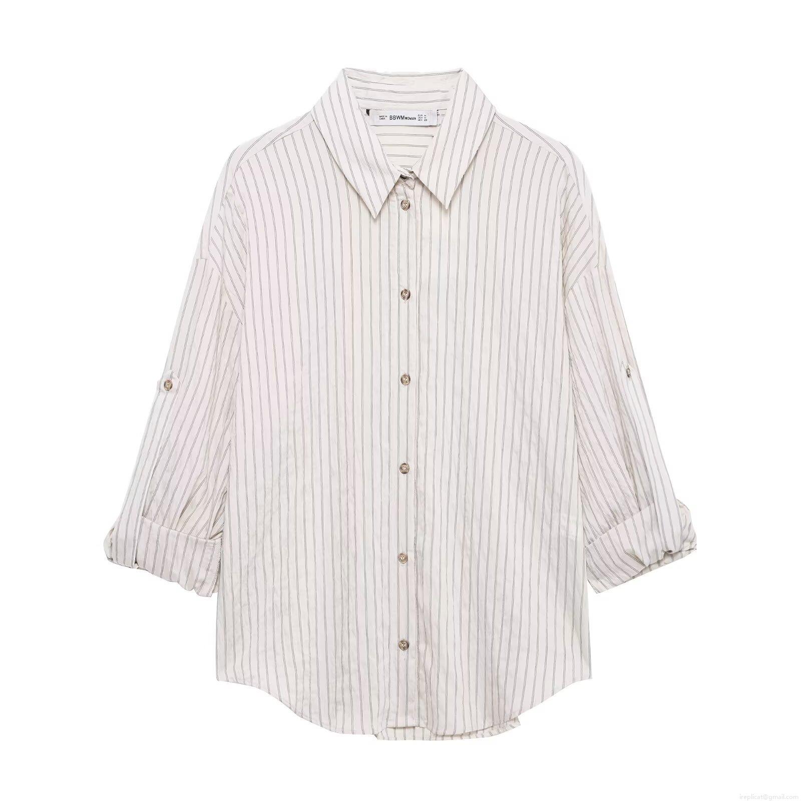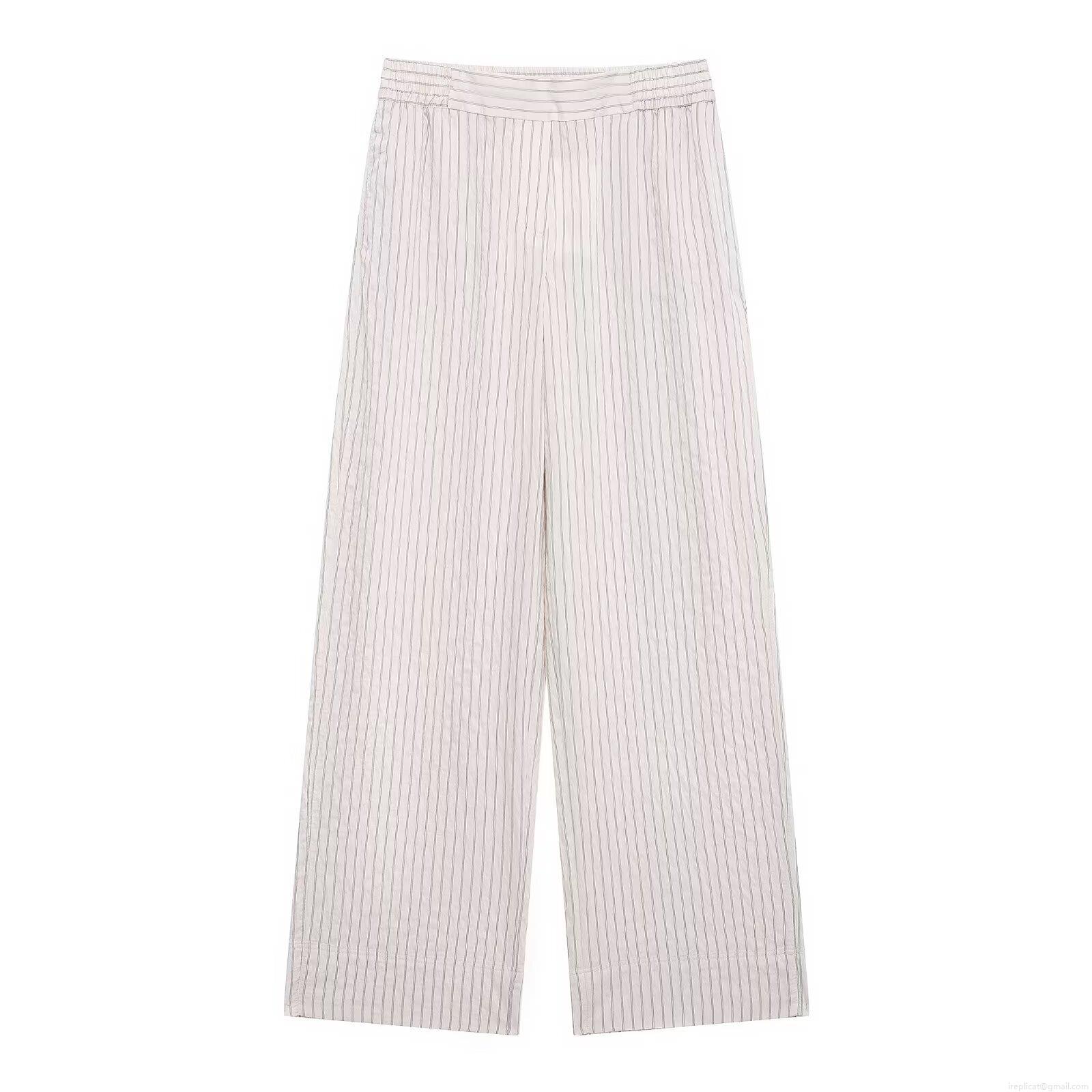 • Women Striped Two Piece Outfits Long Sleeve Button Down Shirt And High Waist Wide Leg Pants Set Casual Lounge Wear Streetwear Autumn Suits