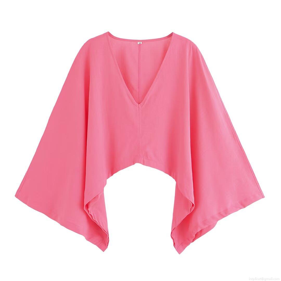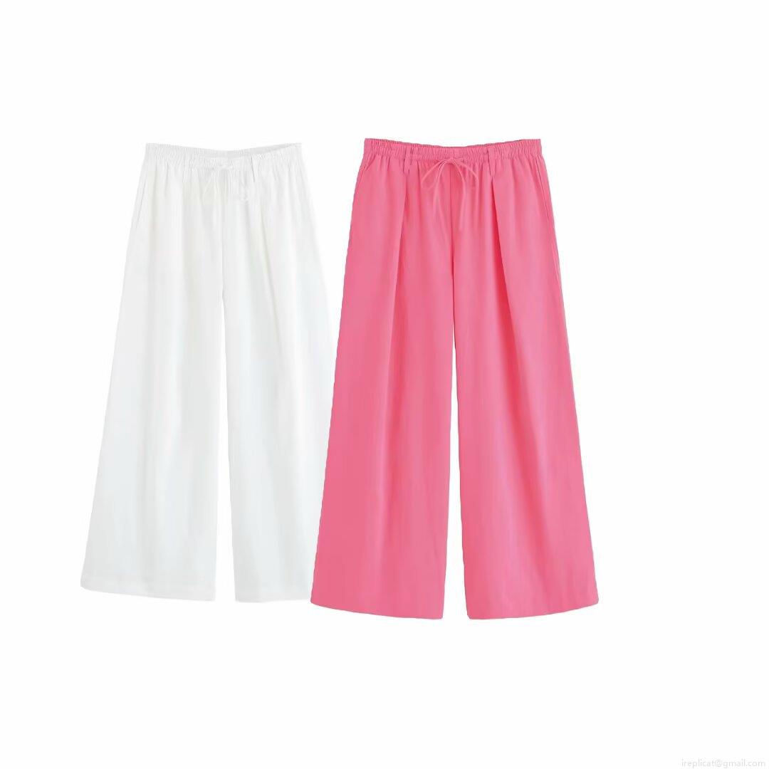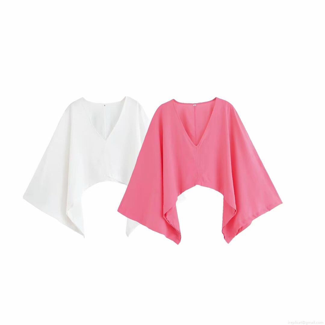 • Women Summer 2-Piece Outfits Casual V Neck Batwing Sleeve Short Crop Top And High Waisted Drawstring Wide Leg Pants Set Solid Color Streetwear Suit For Women