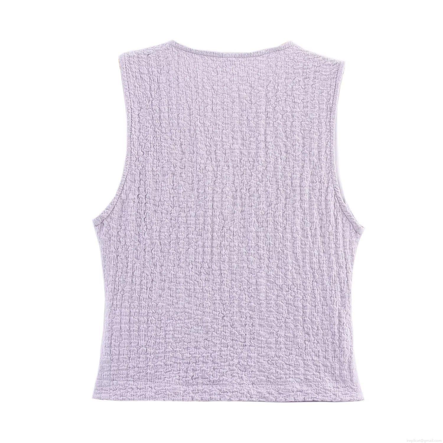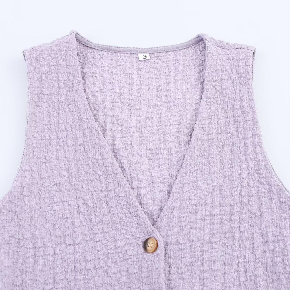 • Women Summer Casual Textured Vest Top And Wide Leg Pants Set V-Neck Single Breasted Seersucker Sleeveless Tank Top With Drawstring Straight Trousers Two Piece Outfits