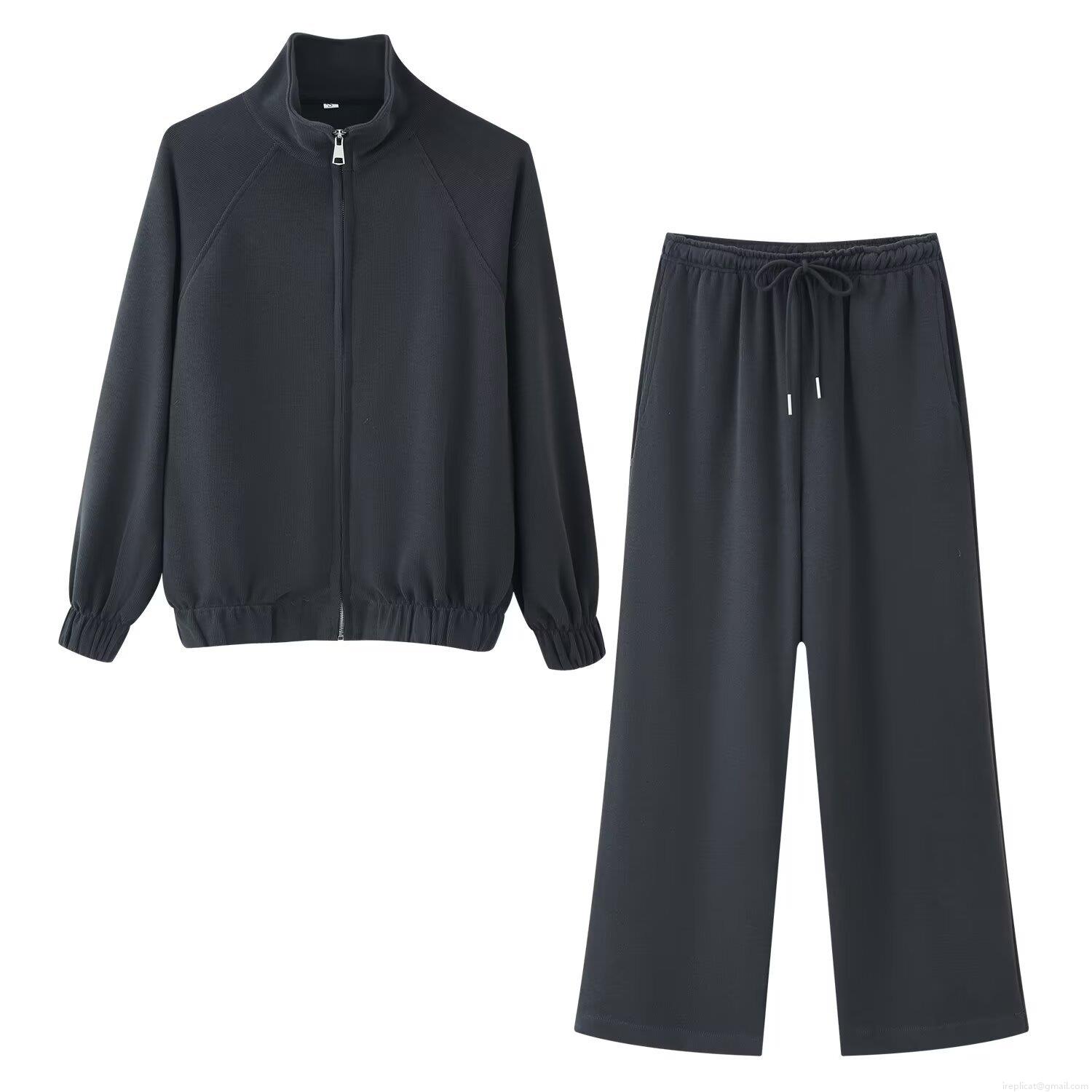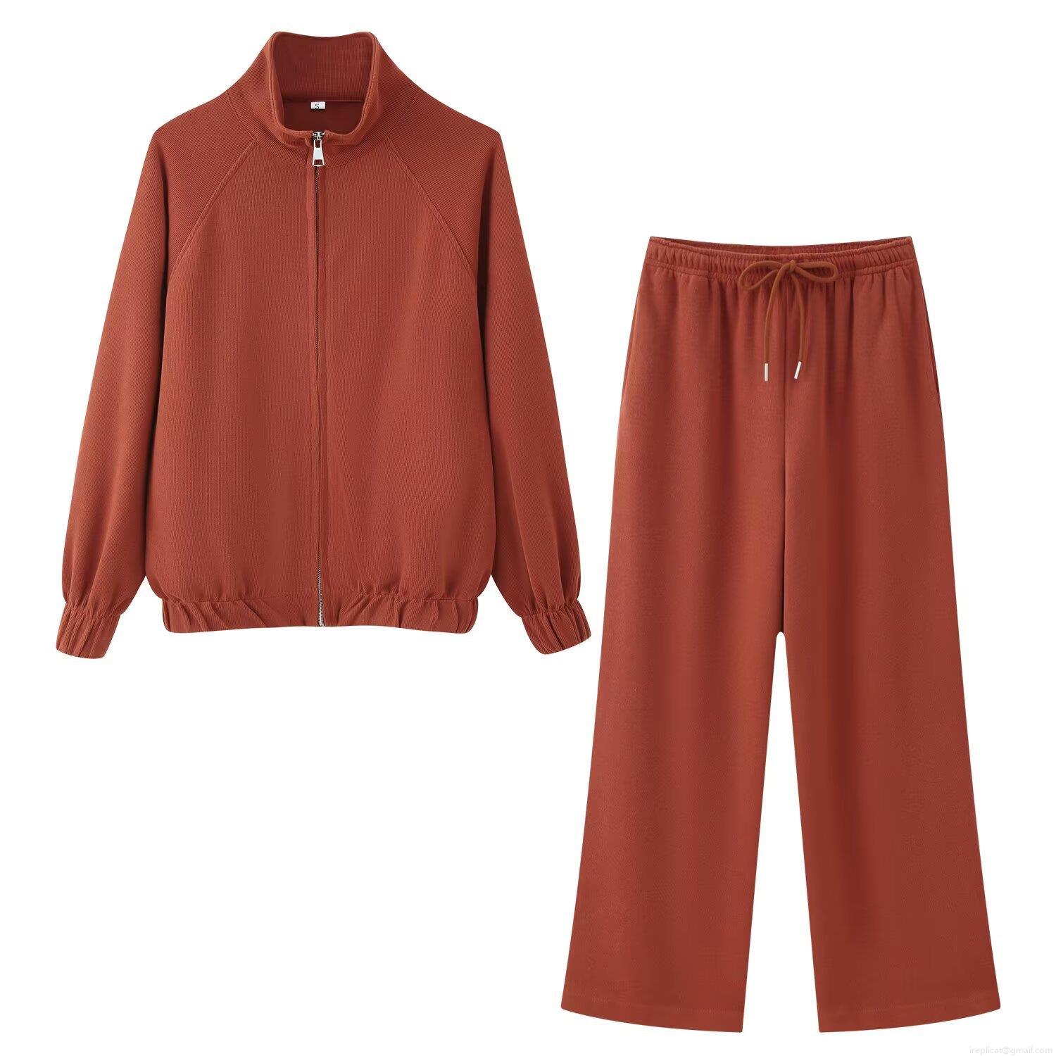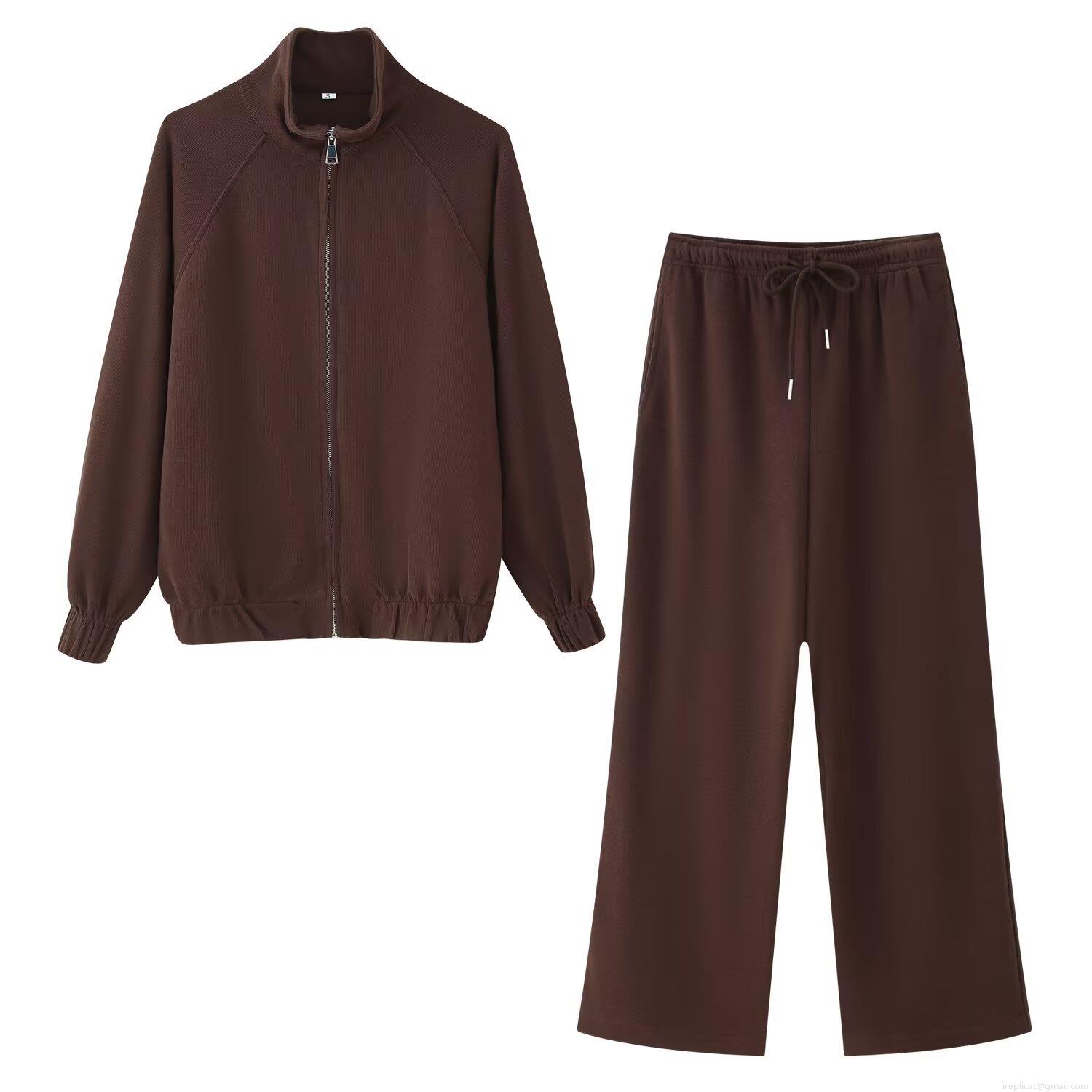 • Women Two Piece Set Casual Half Zip Stand Collar Sweatshirt High Waisted Wide Leg Pants Soft Knit Polyester Tracksuit Loungewear Suits Fall Fashion