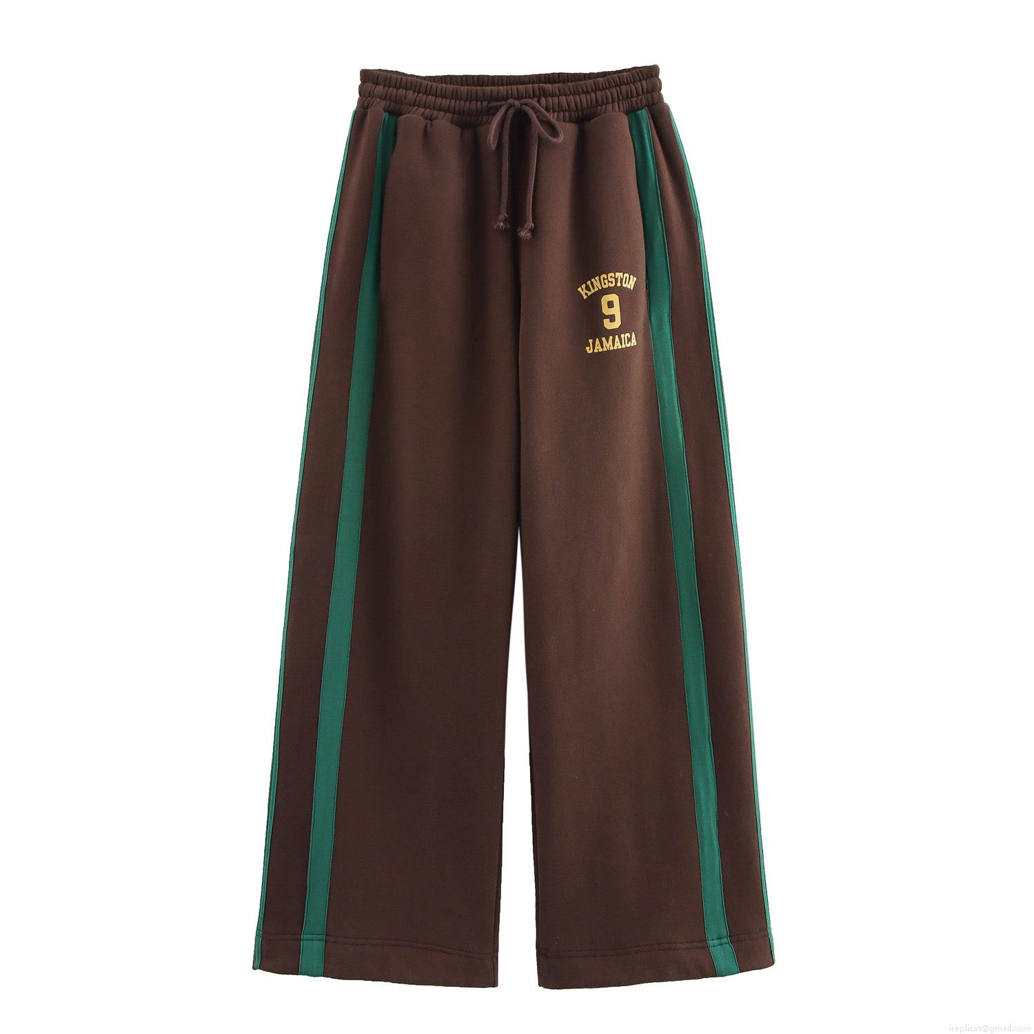 Stripe, Letters, Color Blocking, Printing, Zipper, Wide-leg, Place Name