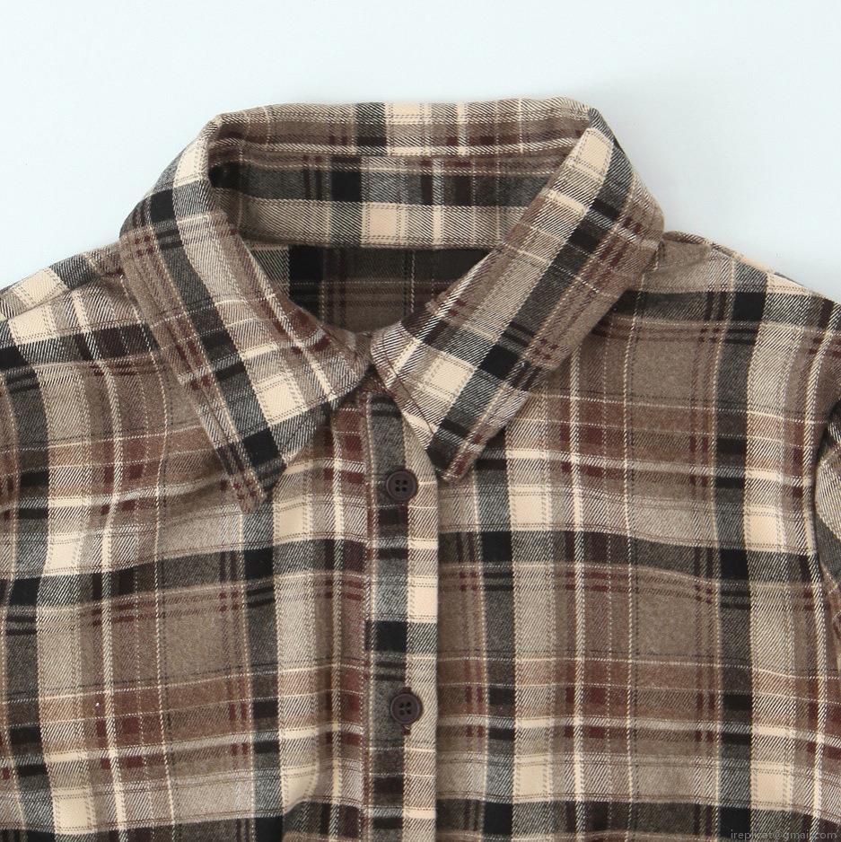 • Women Vintage Plaid Two Piece Set Winter Slim Fit Long Sleeve Lapel Shirt And Straight Leg Pants Casual Brown Plaid Blouse Trousers Suit For Office Daily Wear