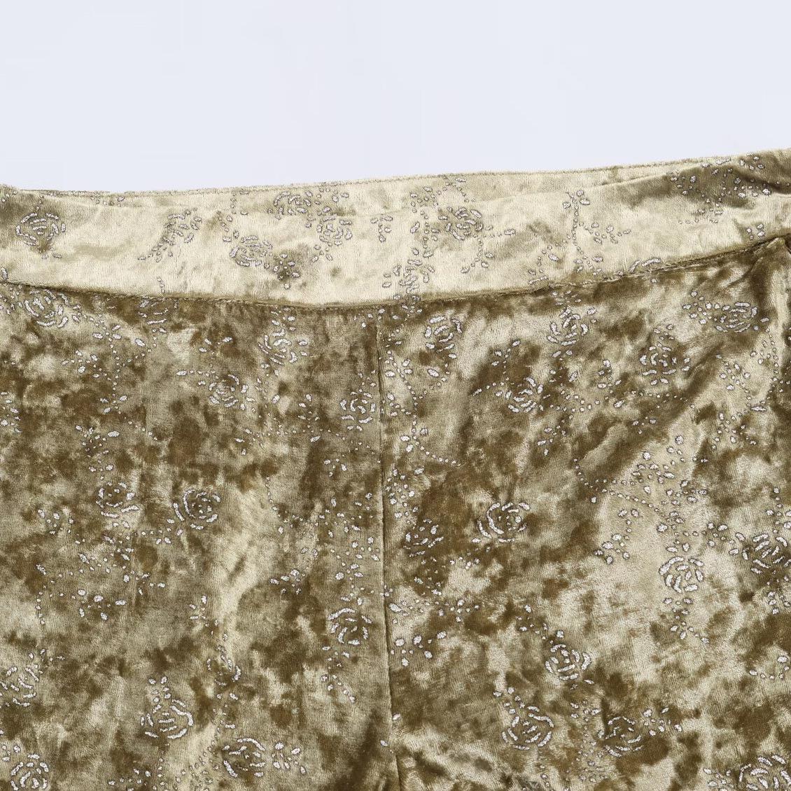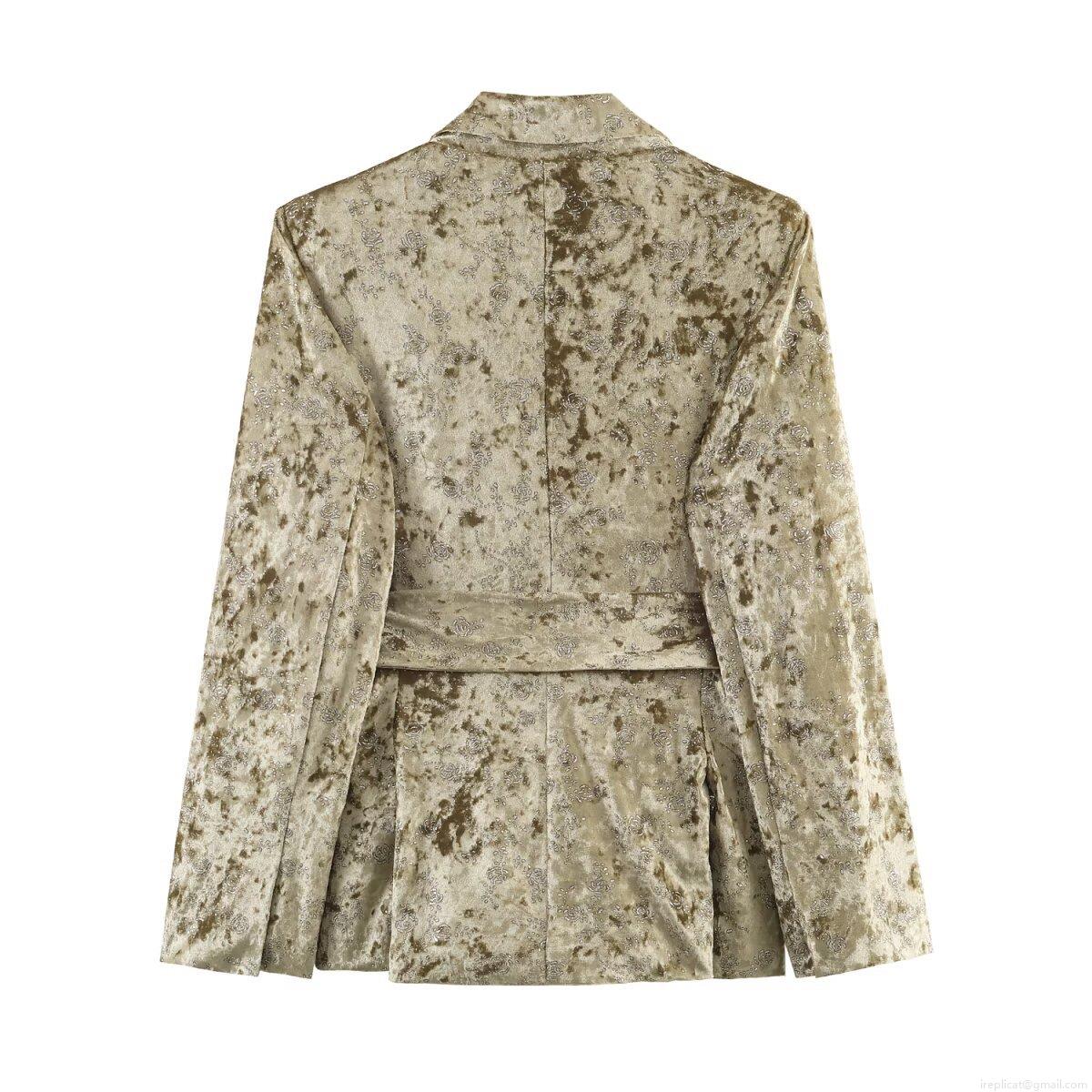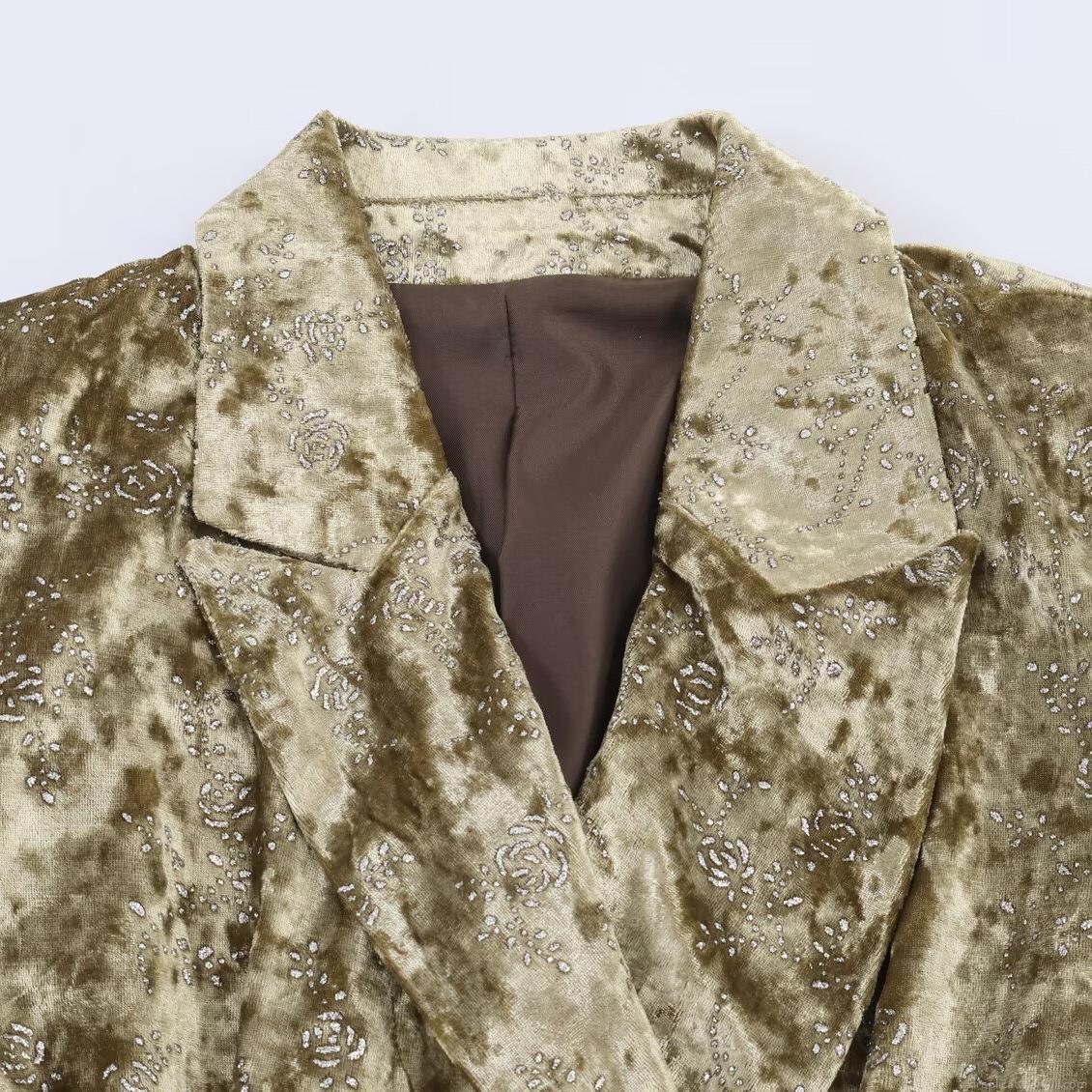 • Women Vintage Velvet Blazer Pants Set Metallic Rose Floral Print Belted Waist Blazer and Harem Joggers Trousers Elegant Olive Green Two Piece Suit for Winter Evening Party Commuting