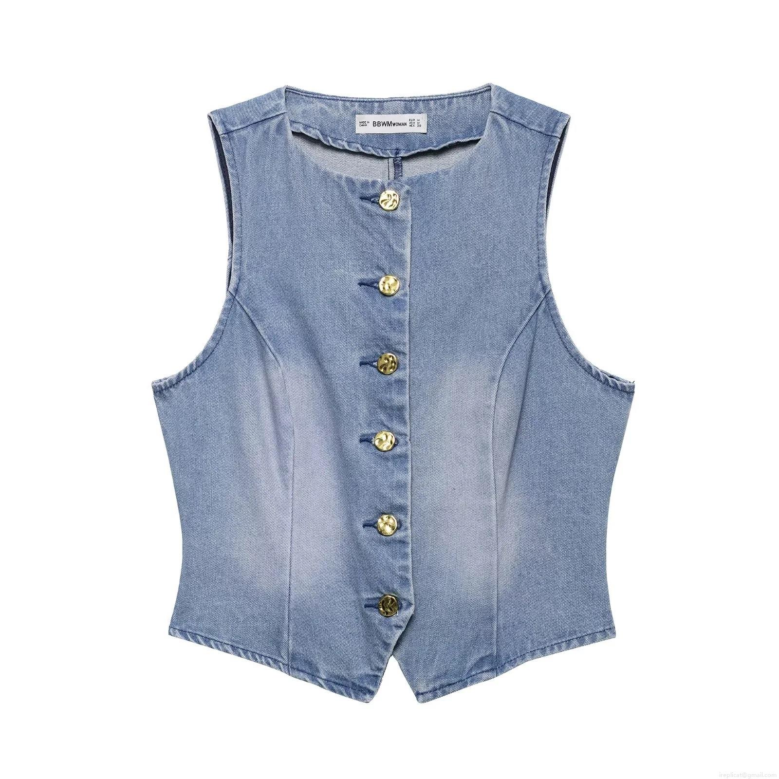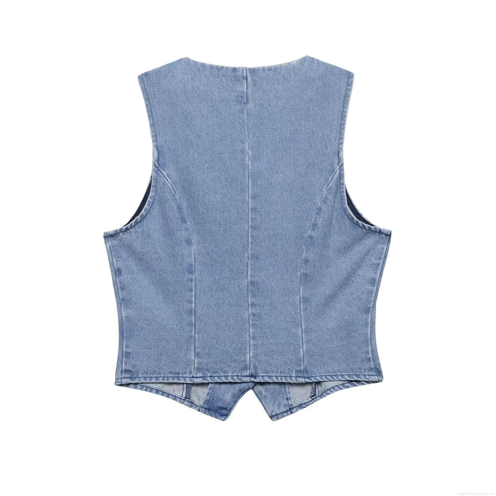 • Women Washed Light Blue Denim Two Piece Sets Retro Short Vest With High Waist Pleated Wide Leg Pants Casual Sleeveless Top Trousers Outfits For Streetwear Club Party