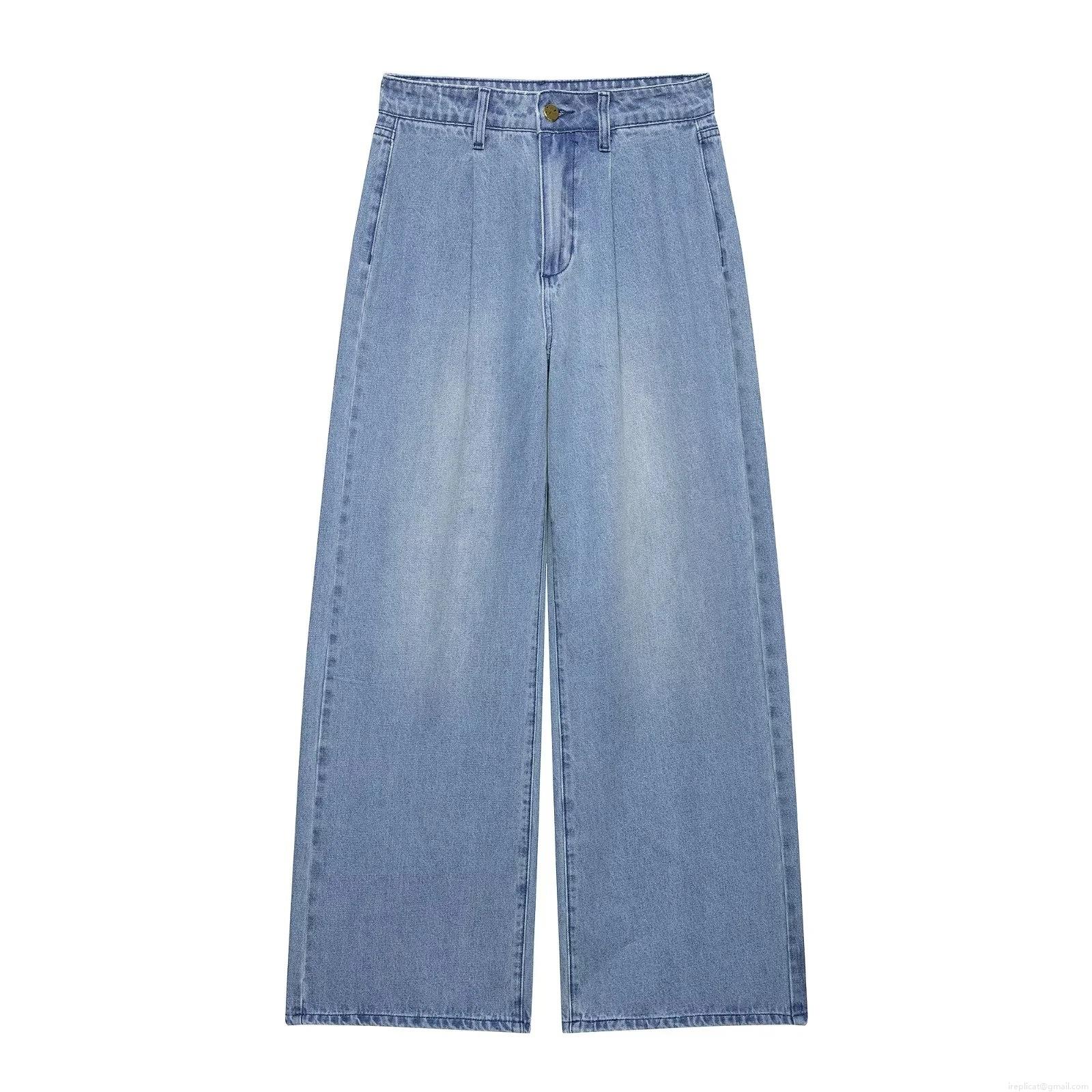 Solid Color, Water Washing And Whitening, Gold Buttons, Wide-leg Design, High-waisted Pleats