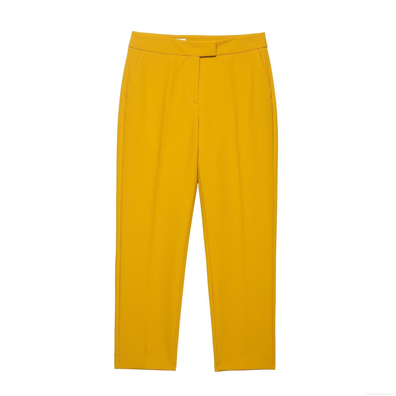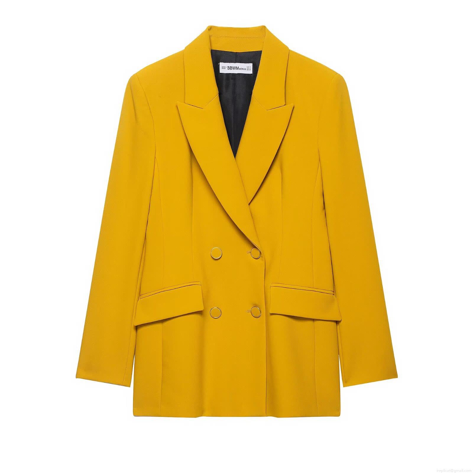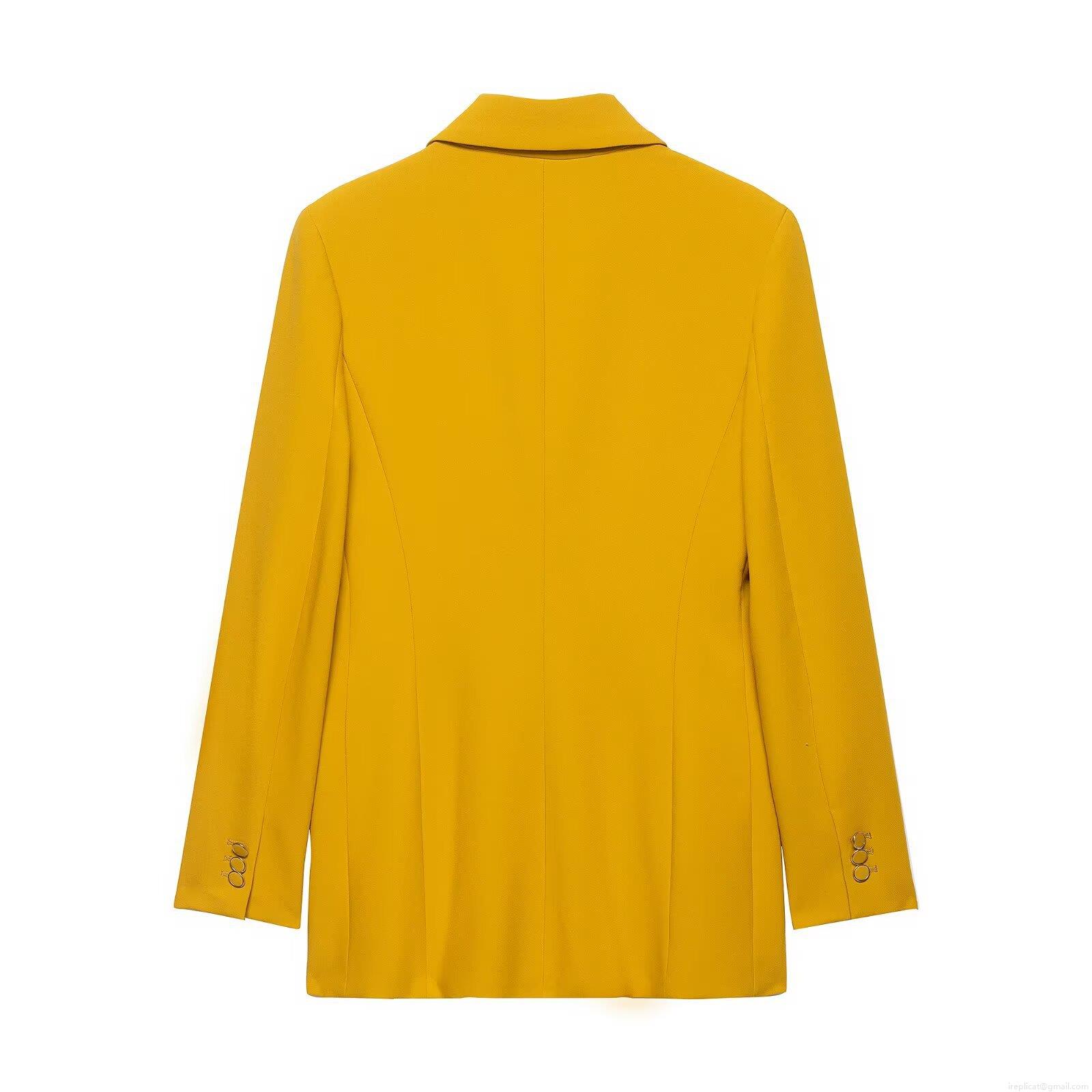 • Women Western Style Blazer Pants Set 100% Polyester Double Breasted Padded Shoulder Blazer With High Waist Straight Leg Trousers Professional Office Daily Streetwear Ginger Yellow Two Piece Outfit