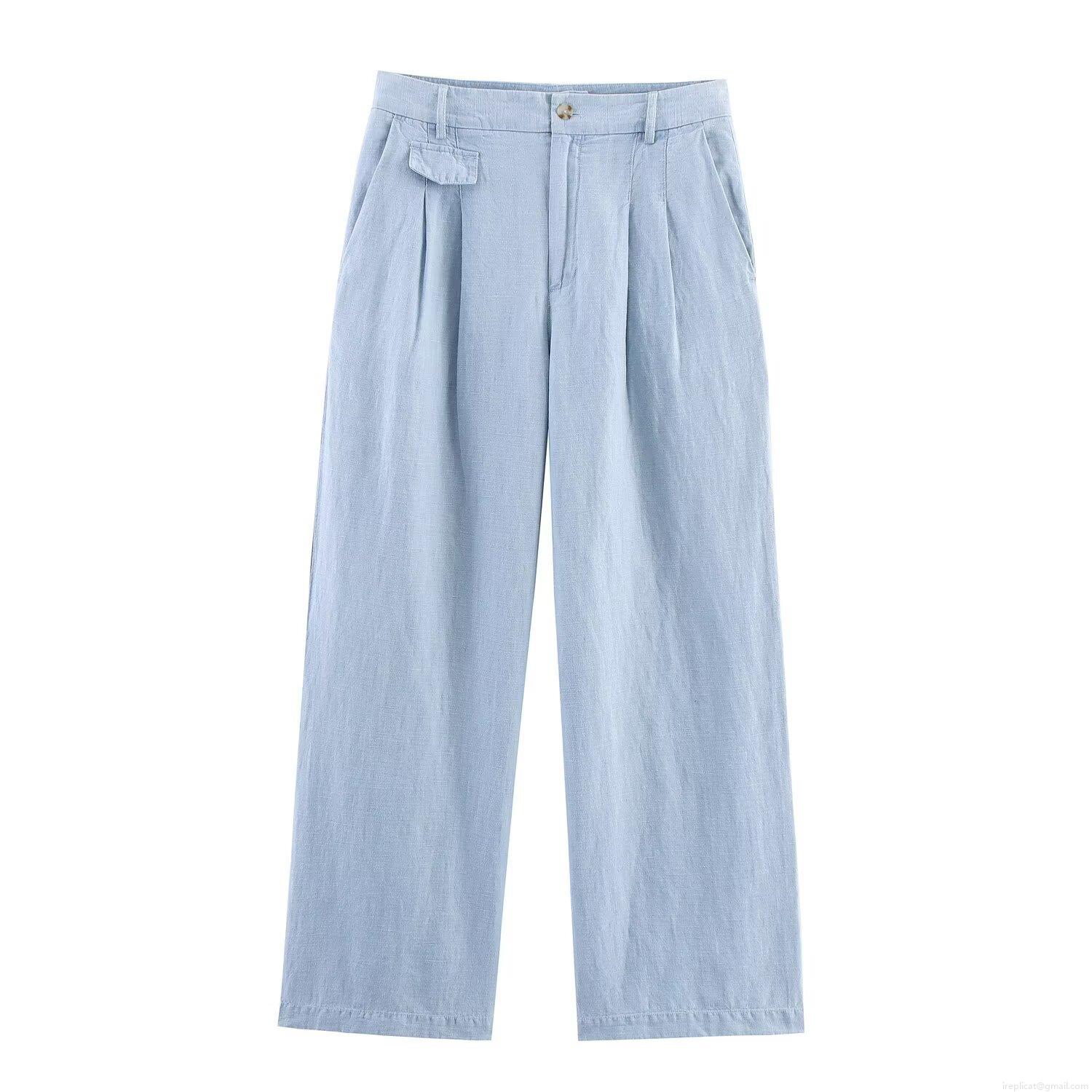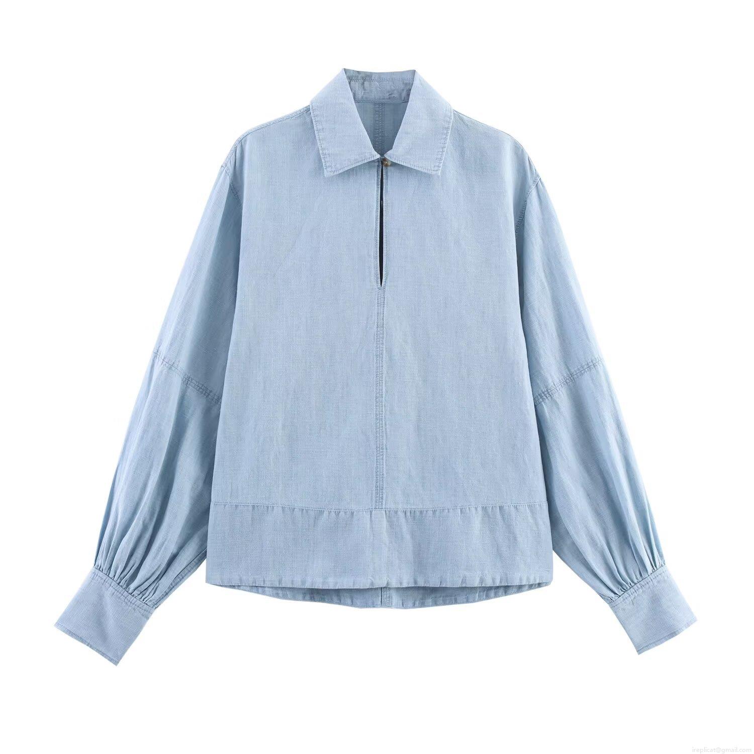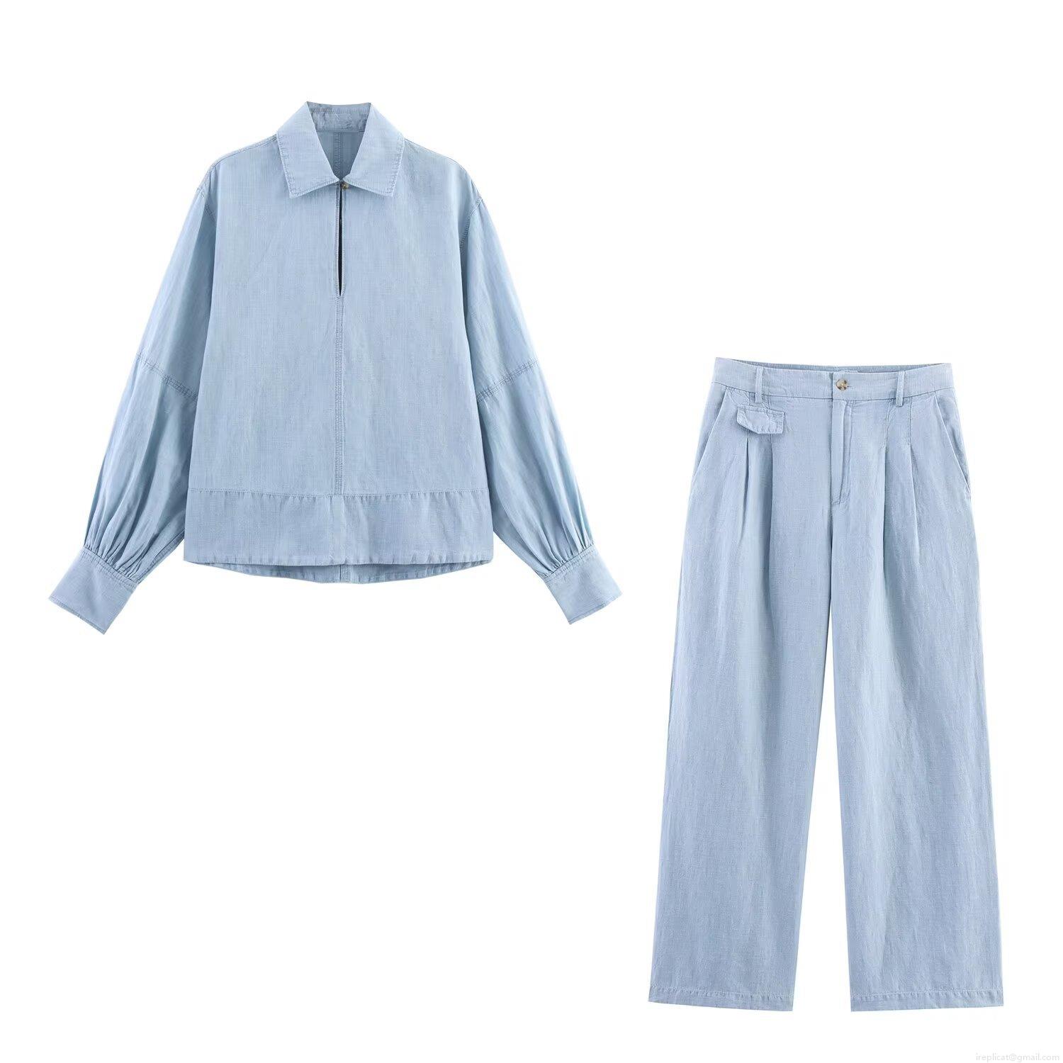 • Women Western Style Light Blue Washed Denim Shirt And Wide Leg Pants Set Casual Distressed Solid Long Sleeve Top Two Piece Outfits Streetwear