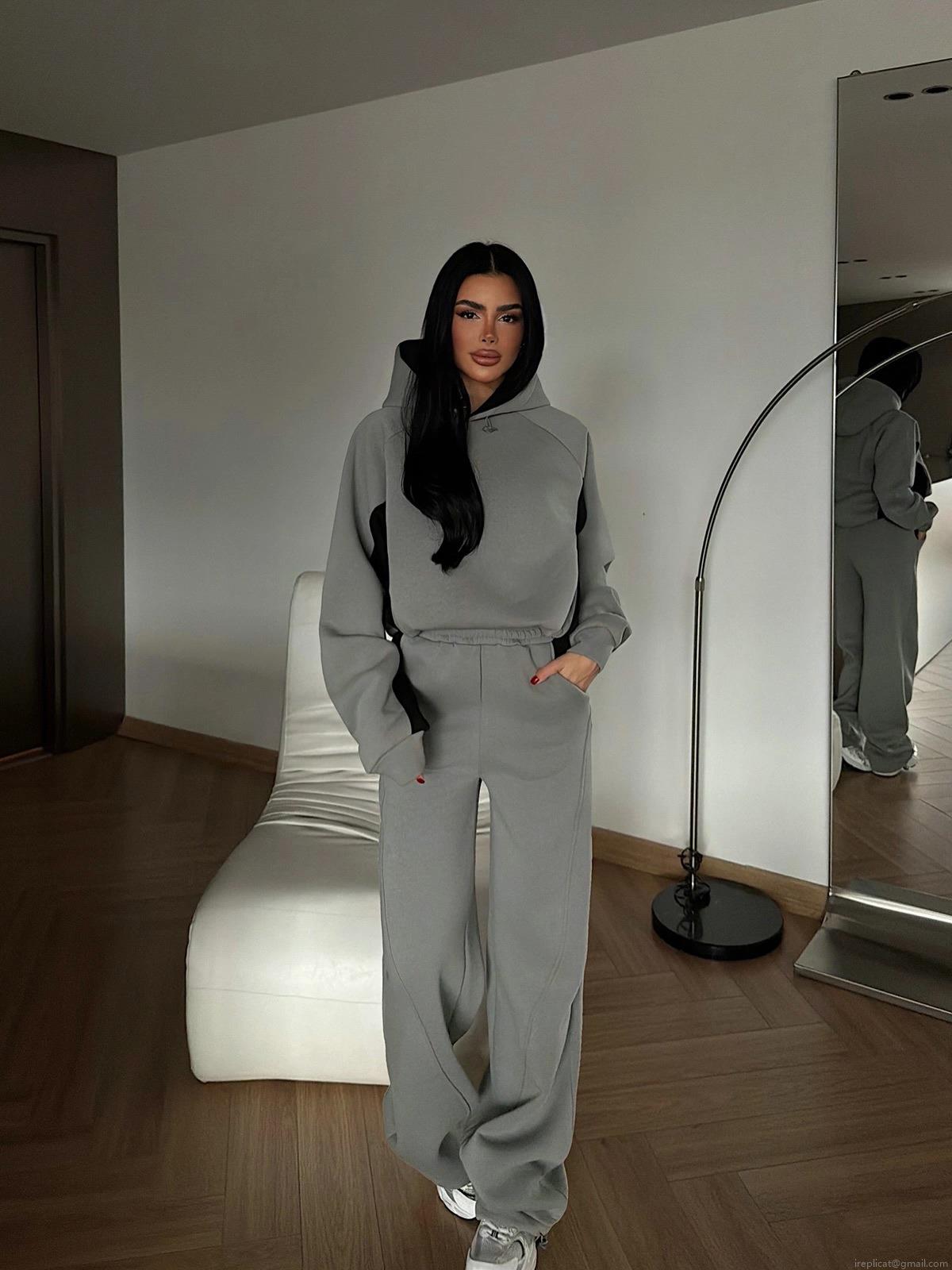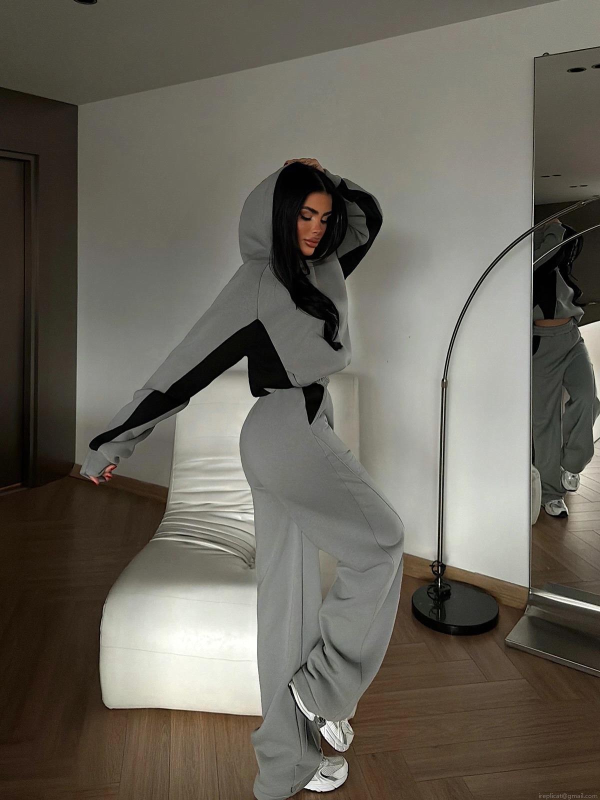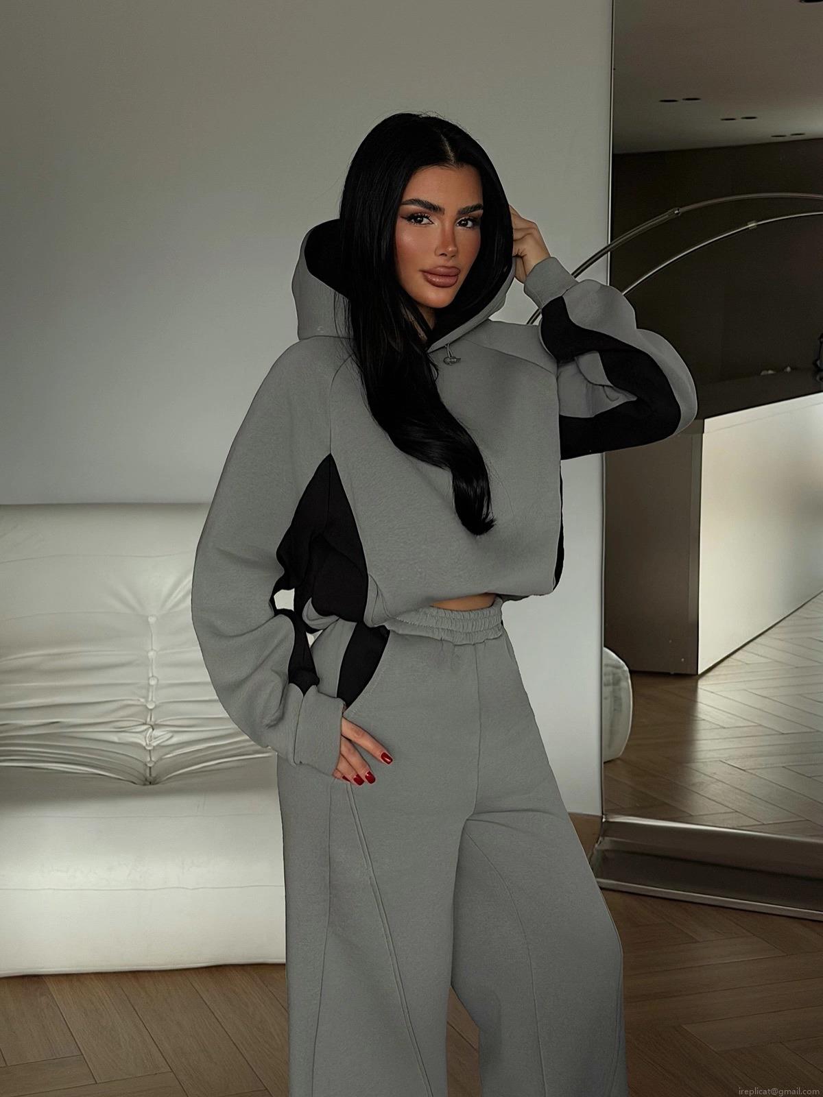 • Women's 100% Cotton Patchwork Hoodie and Sweatpants 2 Piece Set Oversized Contrast Color Long Sleeve Hooded Top and High Waist Wide Leg Pants Tracksuit Loungewear