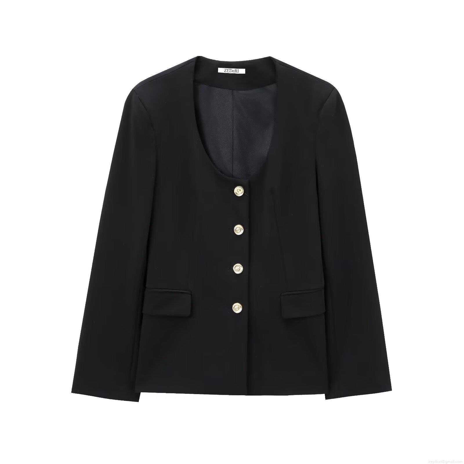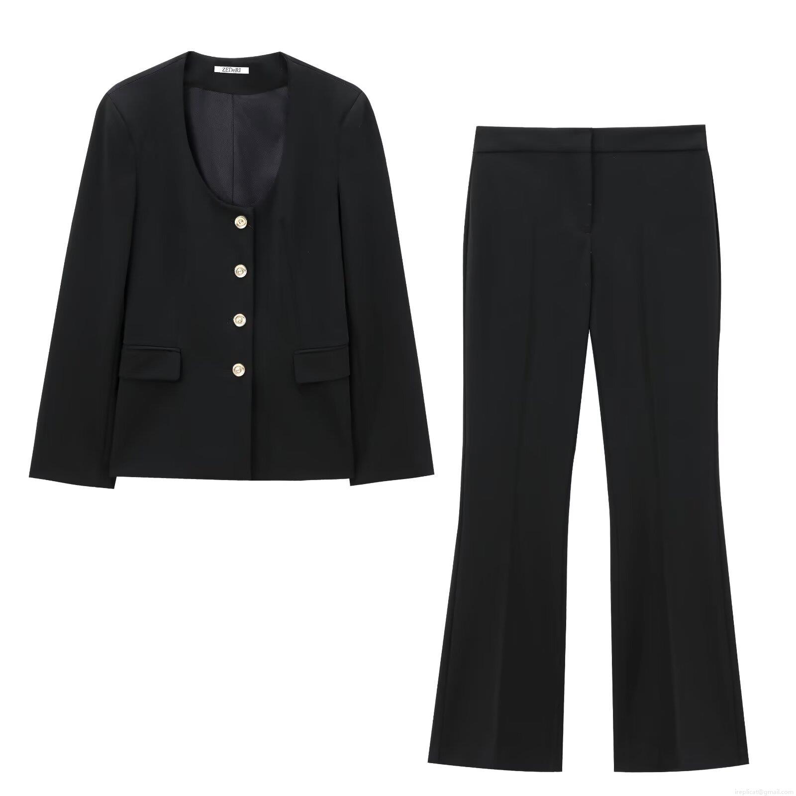 • Women's 2 Piece Blazer Pants Set Elegant Round Neck Long Sleeve Metal Button Blazer High Waist Flare Pants Business Office Casual Streetwear