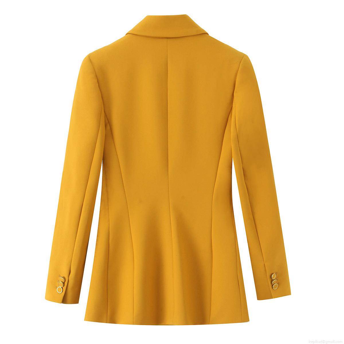 Women's 2 Piece Blazer Set Polyester Double Breasted Jacket With Straight Leg Pants Office Professional Ginger Yellow Suit Elegant Ladies Streetwear Outfit
