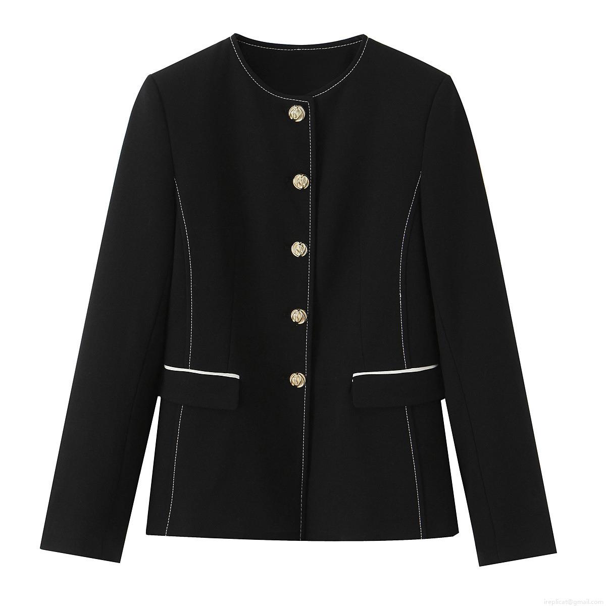 • Women's 2 Piece Blazer Suit Set Contrast Stitching Round Neck Long Sleeve Jacket And Belted Culottes Polyester Elegant Office Lady Outfit