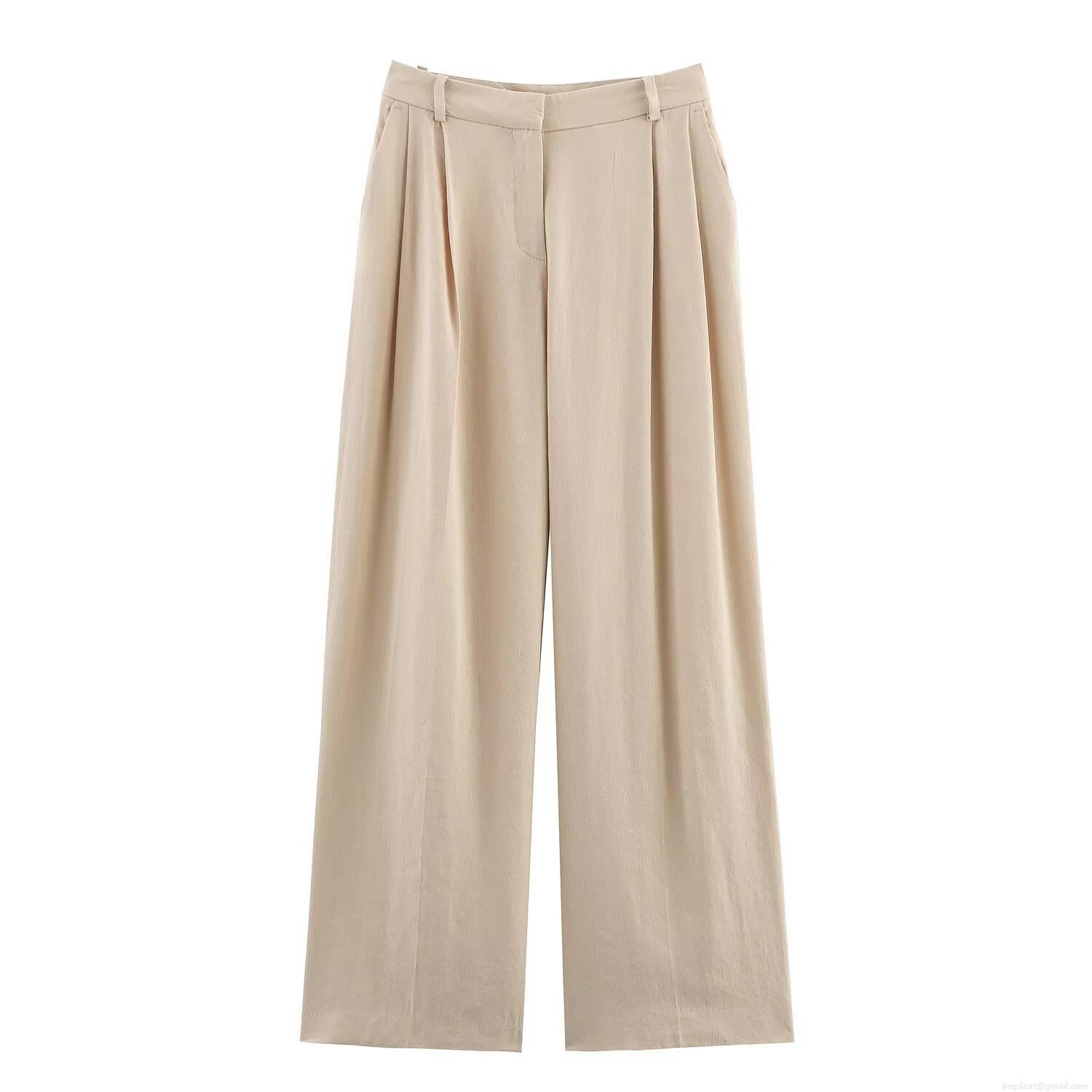 • Women's 2 Piece Blazer Suit Set Linen Blend Single Button Blazer Jacket And High Waist Wide Leg Pants Office Commuter Chic Outfits Set