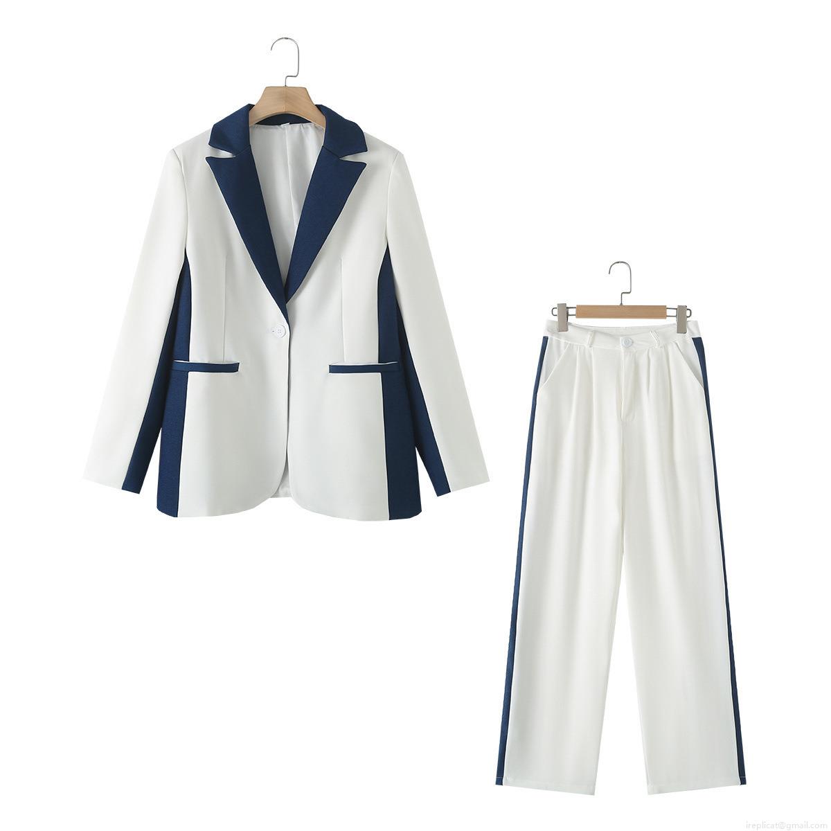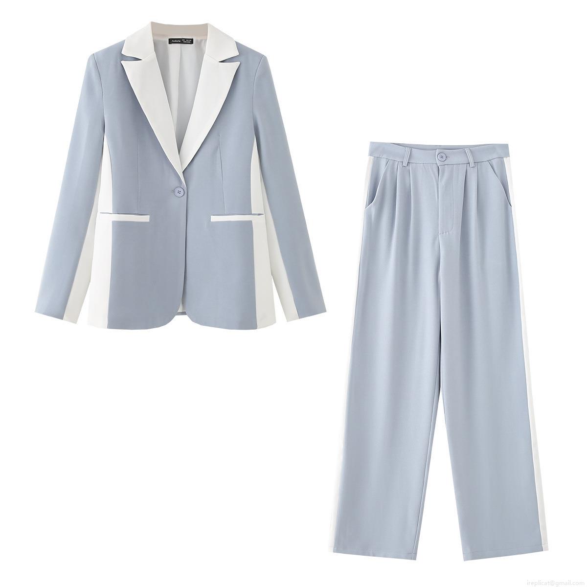 • Women's 2 Piece Blazer Suit Set Patchwork Notch Lapel Single Button Jacket and High Waist Straight Leg Pants Commute Professional Office Outfits