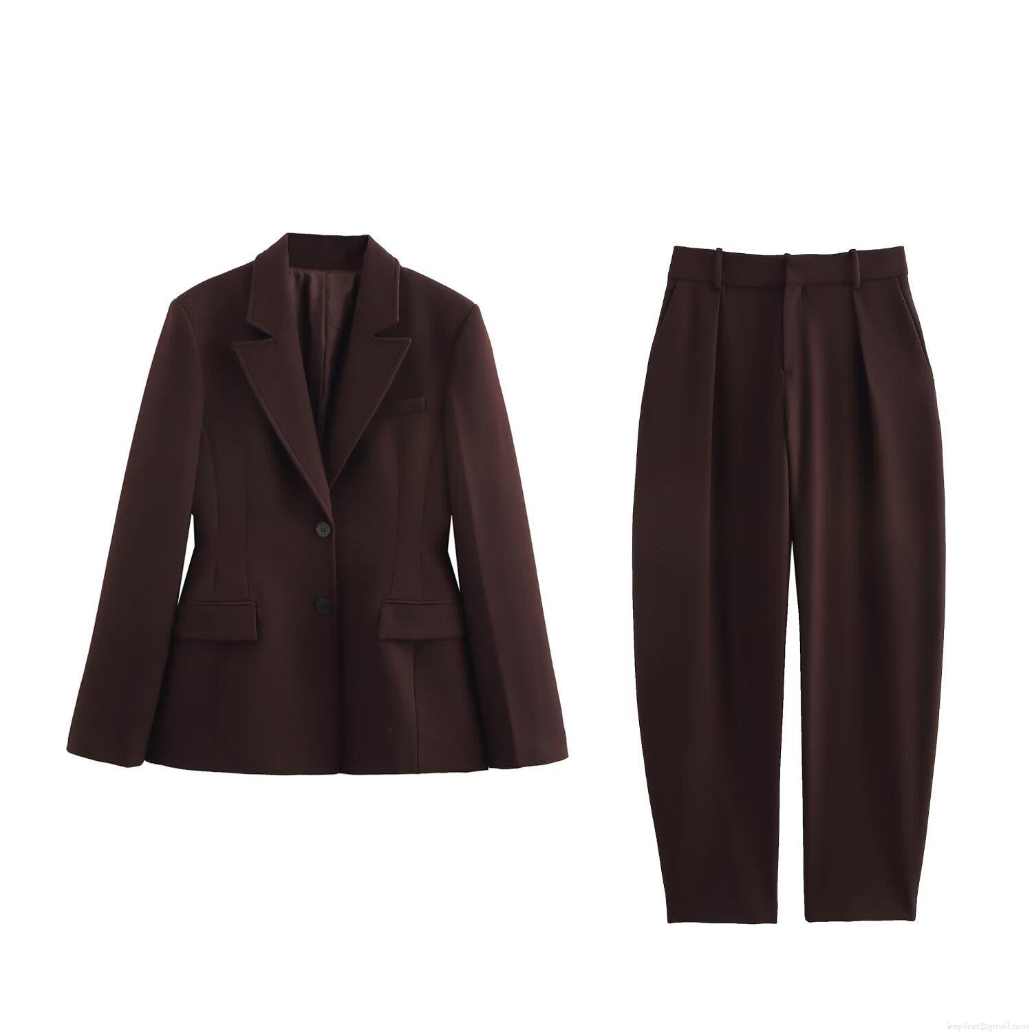 • Women's 2 Piece Blazer Suit Set Solid Color Lapel Long Sleeve Jacket And High Waist Wide Leg Wide-leg Pants Office Lady Business Casual Outfits Autumn Fashion Clothes