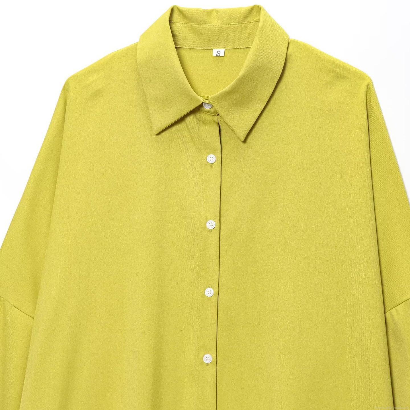 • Women's 2 Piece Casual Lounge Set Solid Color Long Sleeve Button Down Shirt And Drawstring Wide Leg Pants Outfits Polyester Spandex Cotton Linen Texture Summer Loose Pants Set