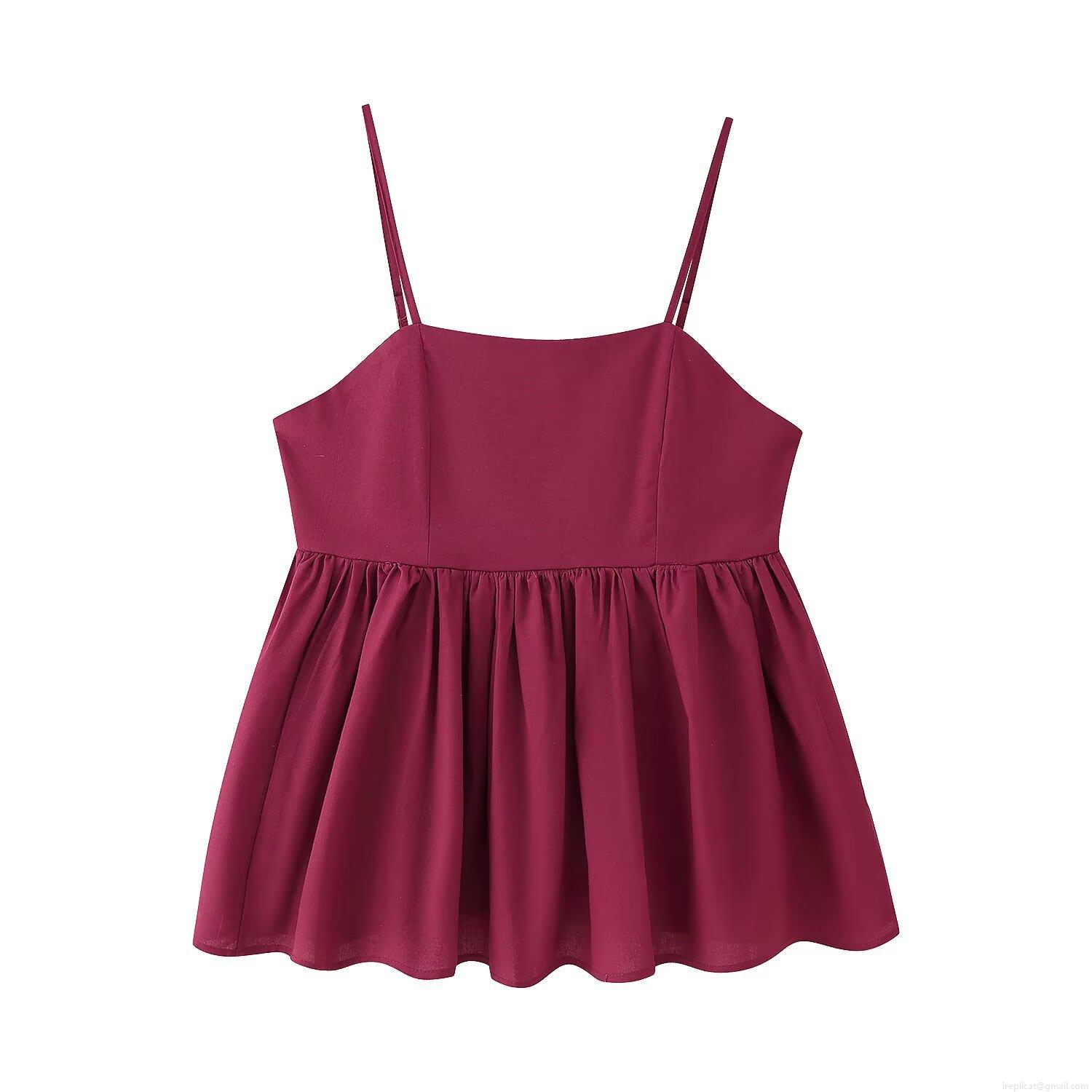 Solid Color, Gathering, Thin Shoulder Straps, Ruffled Hem, Wide-leg Design