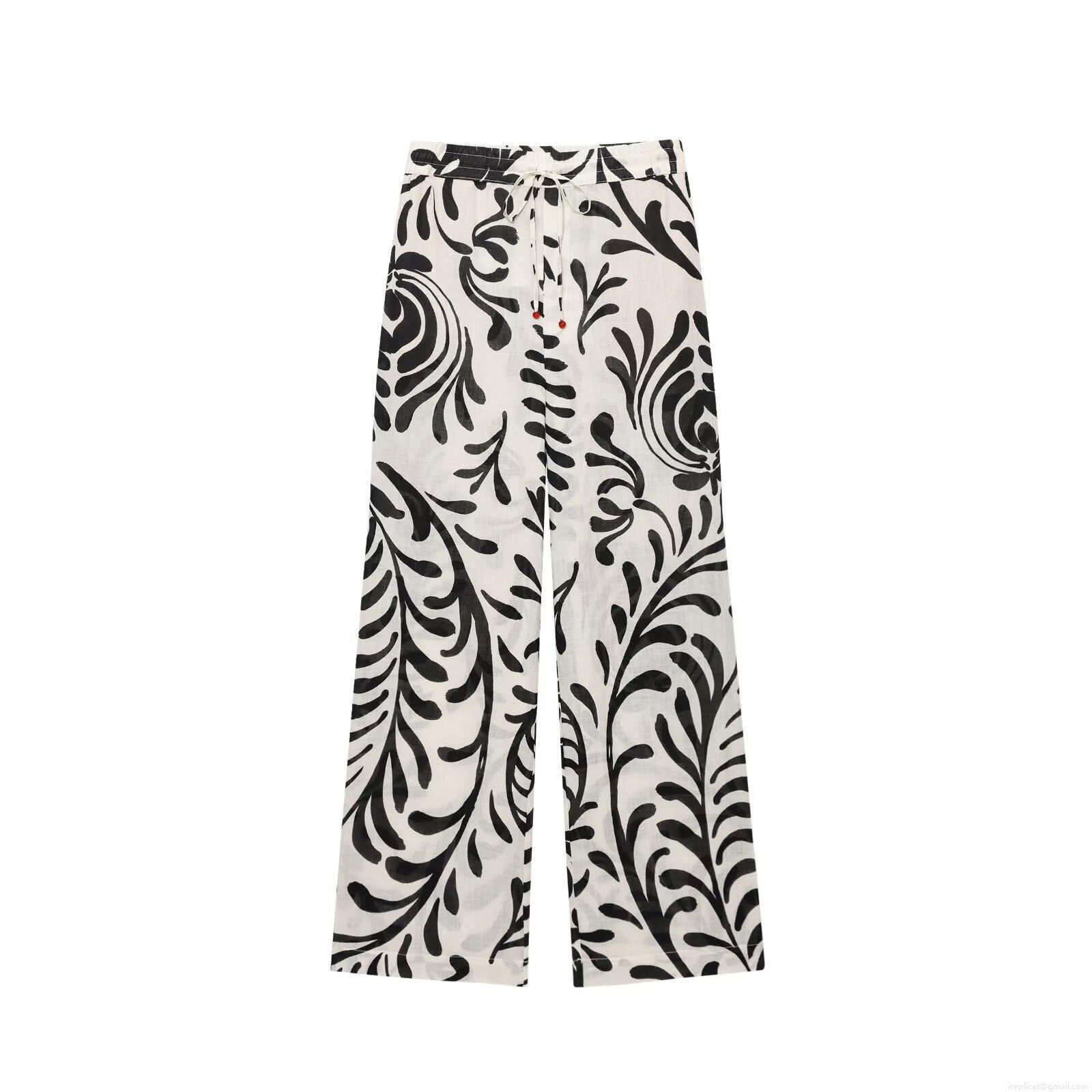 Plants And Flowers, Printing, Lace, Wide-leg, Vine Pattern, Red Bead Decoration