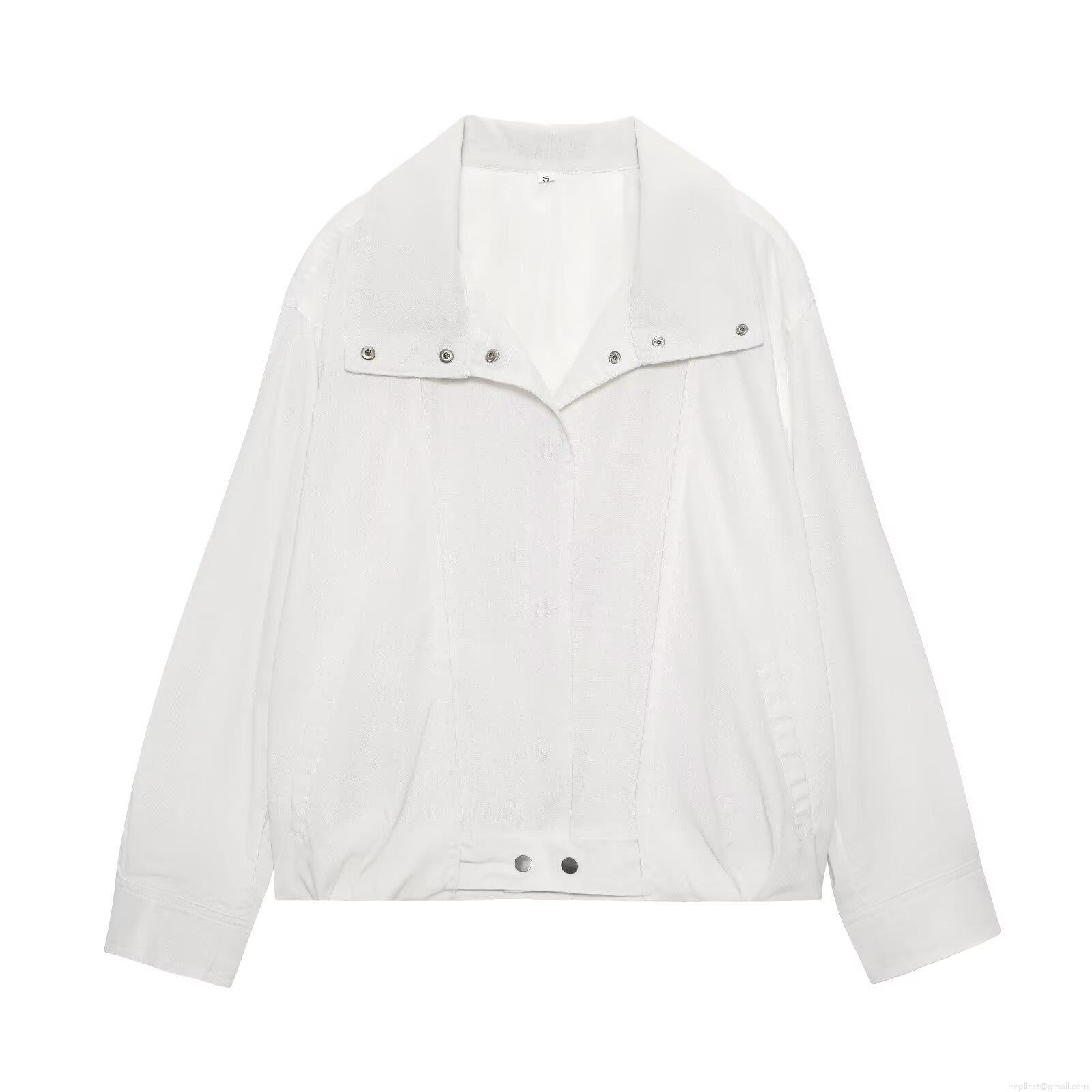 Solid Color, Zipper, Metal Snap, Stand-up Collar, Pleated Design