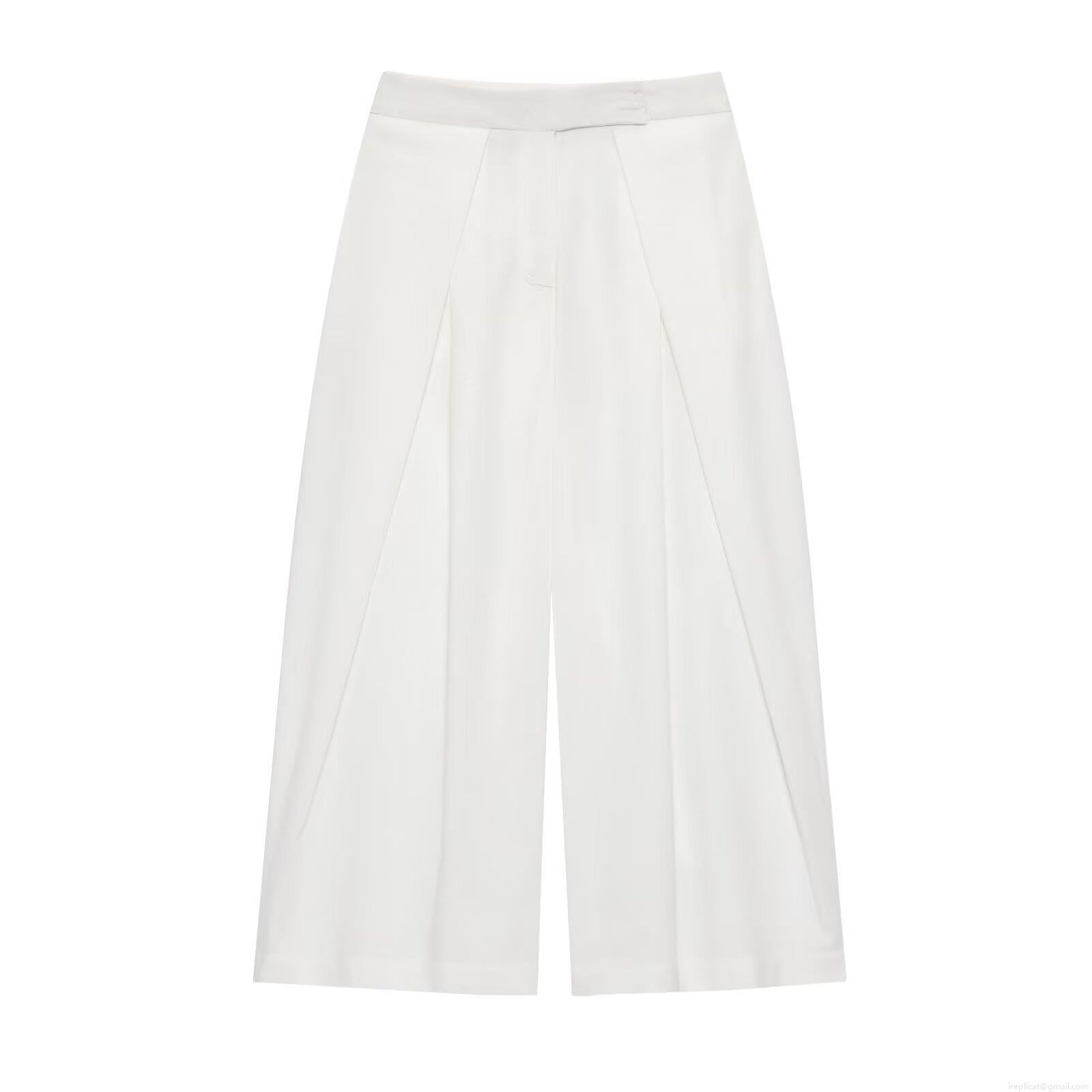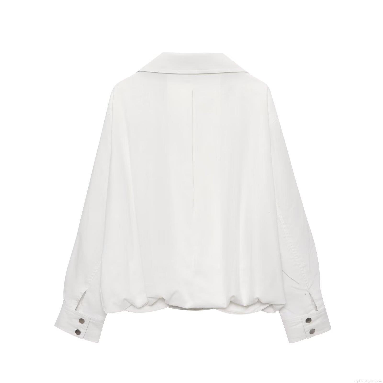 • Women's 2 Piece Casual Set Solid White Lapel Zipper Jacket And High Waist Wide Leg Pleated Pants Modern Streetwear Outfit For Women