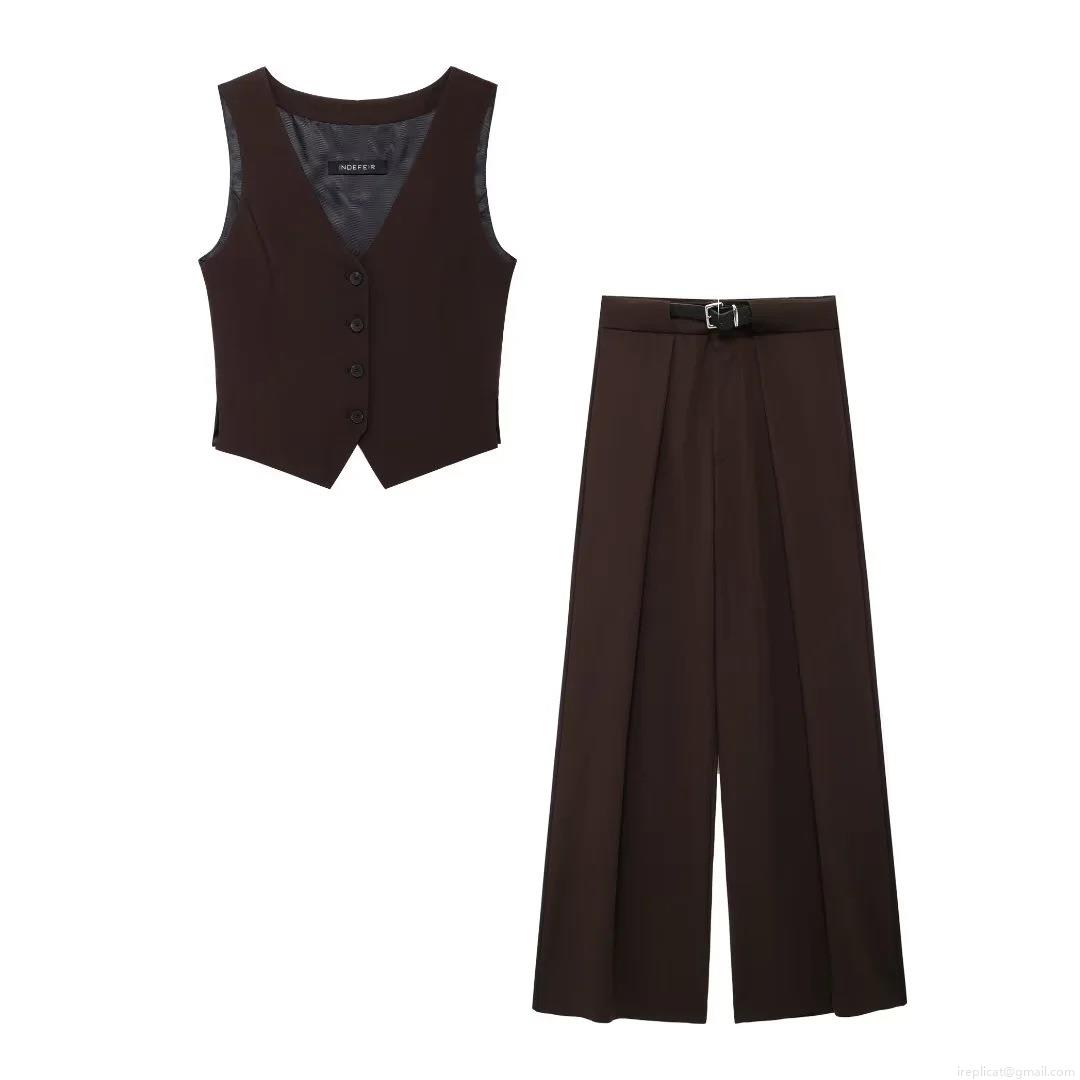 • Women's 2 Piece Elegant Suit Set Sleeveless V Neck Waistcoat Vest and High Waist Wide Leg Trousers With Belt Solid Color Office Lady Commuter Casual Outfits Polyester Blend Fashion Set for Women
