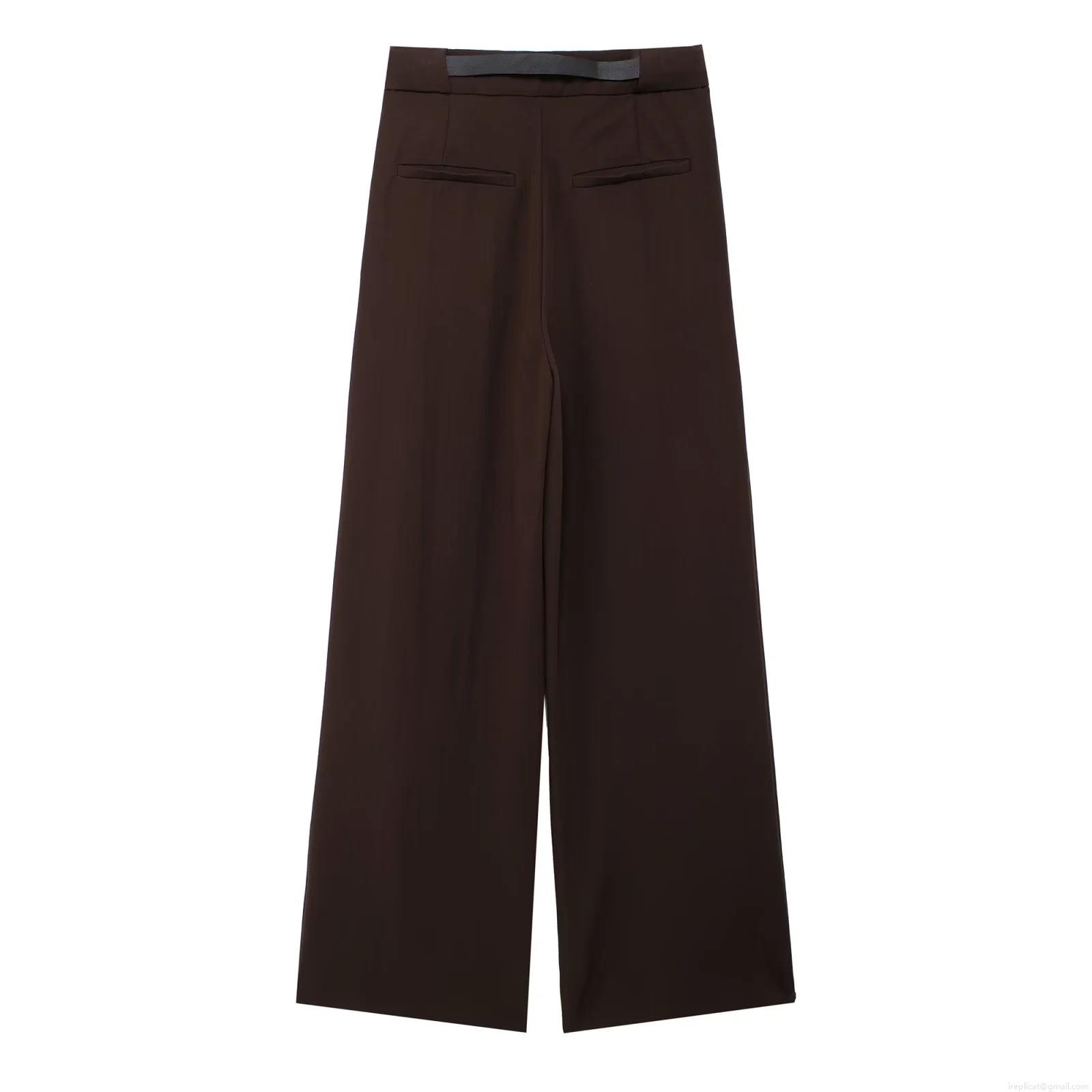 Solid Color, V-neck, Single-breasted, Wide-leg, High-waisted, Thin Leather Belt