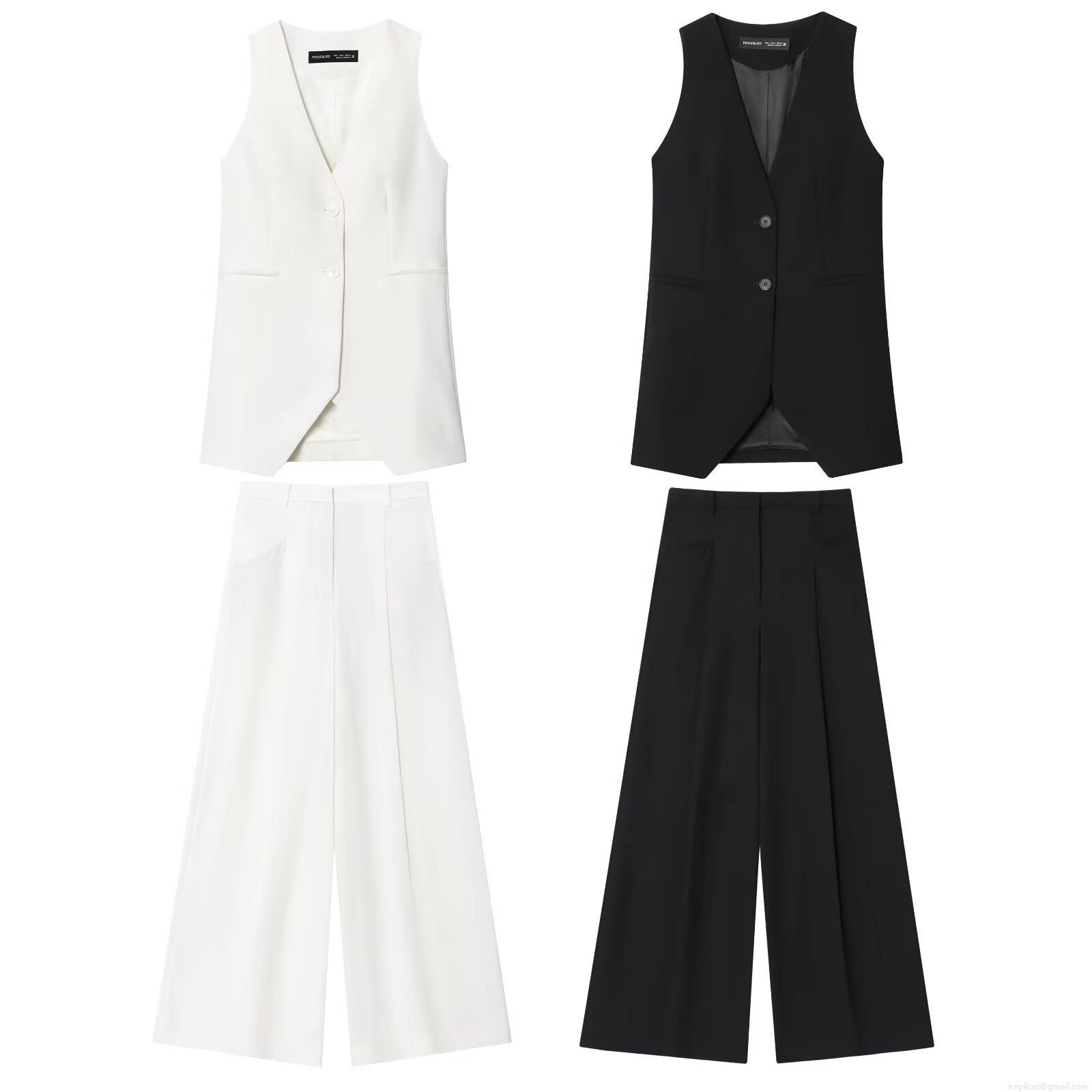 • Women's 2 Piece Elegant Suit Set V Neck Waistcoat Vest And High Waist Wide Leg Trousers Office Lady Business Casual Outfits Polyester Woven Fabric