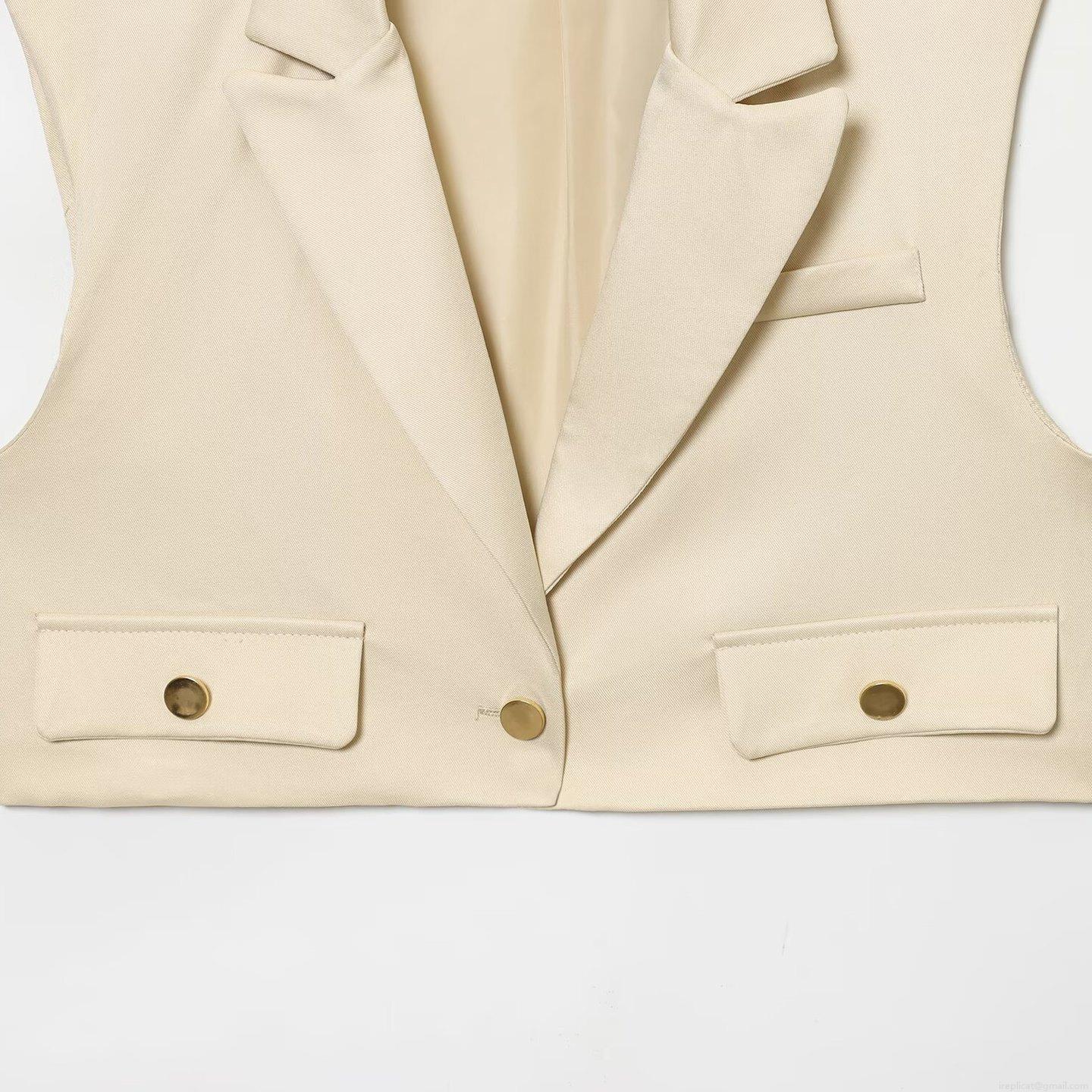 • Women's 2 Piece Fashion Set Sleeveless Lapel Short Vest and High Waist Wide Leg Pants Polyester Spandex Blend Outfits Solid Color Modern Office Chic Suits with Gold Buttons for Women