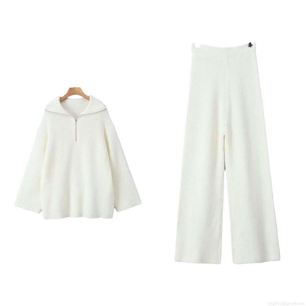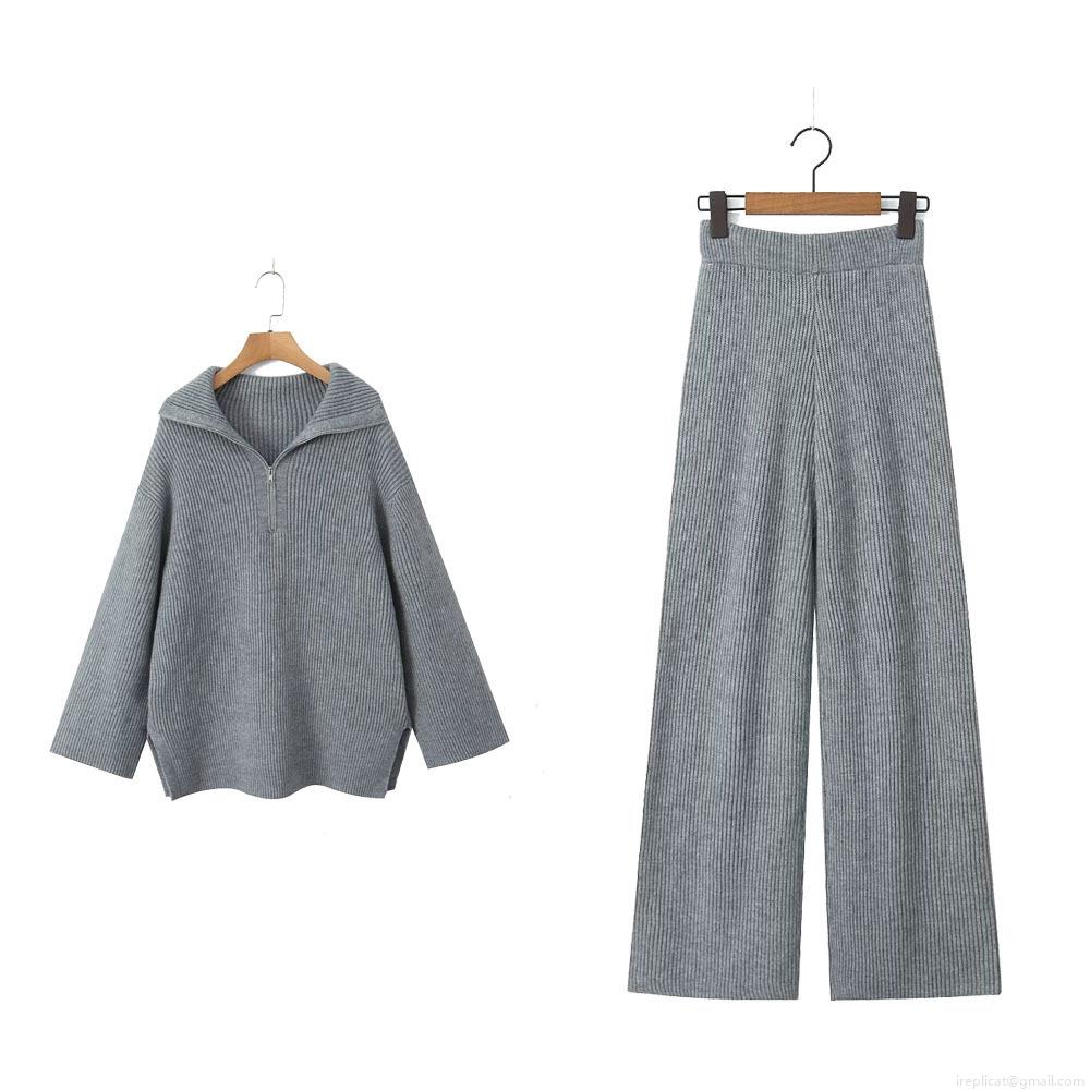 • Women's 2 Piece Knit Set Half Zipper Lapel Oversized Pullover Sweater And High Waist Wide Leg Pants Ribbed Knitted Tracksuit For Fall Winter Casual Loungewear