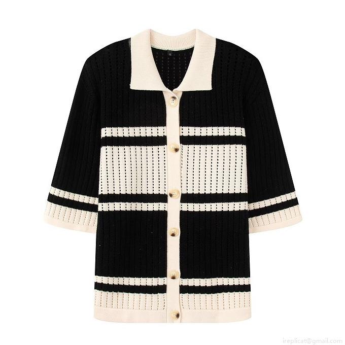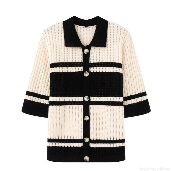 • Women's 2 Piece Knit Set Striped Color Block Polo Collar Button Up Cardigan Wide Leg Pants Casual Lounge Outfits Sweatsuit