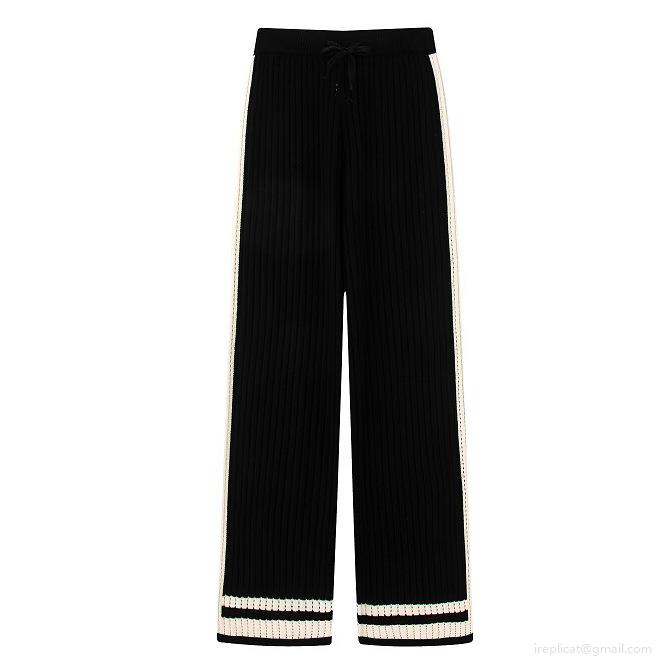 Women's 2 Piece Knit Set Striped Color Block Polo Collar Button Up Cardigan Wide Leg Pants Casual Lounge Outfits Sweatsuit