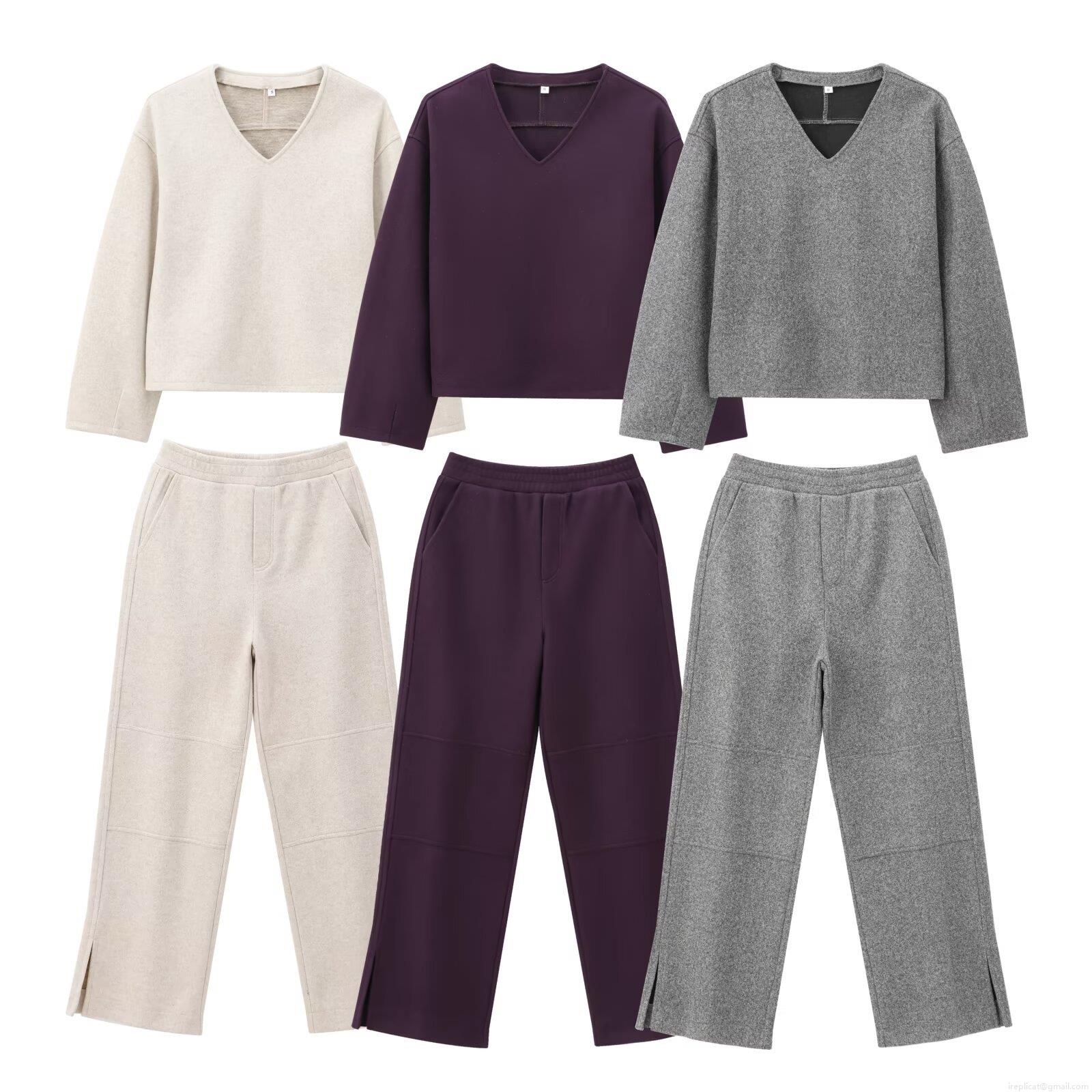 • Women's 2 Piece Lounge Set Knit V-Neck Long Sleeve Sweatshirt Top And Wide Leg Pants Casual Solid Color Streetwear Winter Warm Outfit