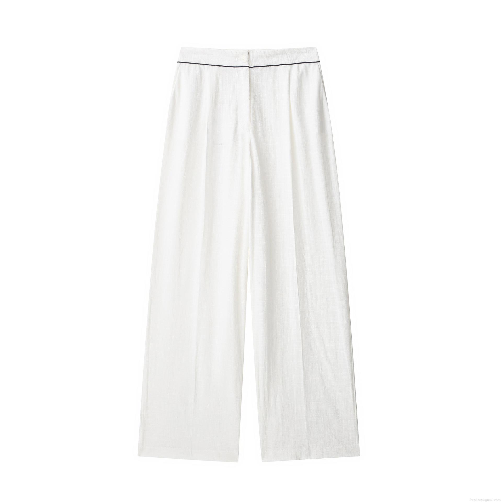 Solid Color, V-neck, Lace-up Design, Piping Decoration, Contrasting Color Piping, Wide-leg Style