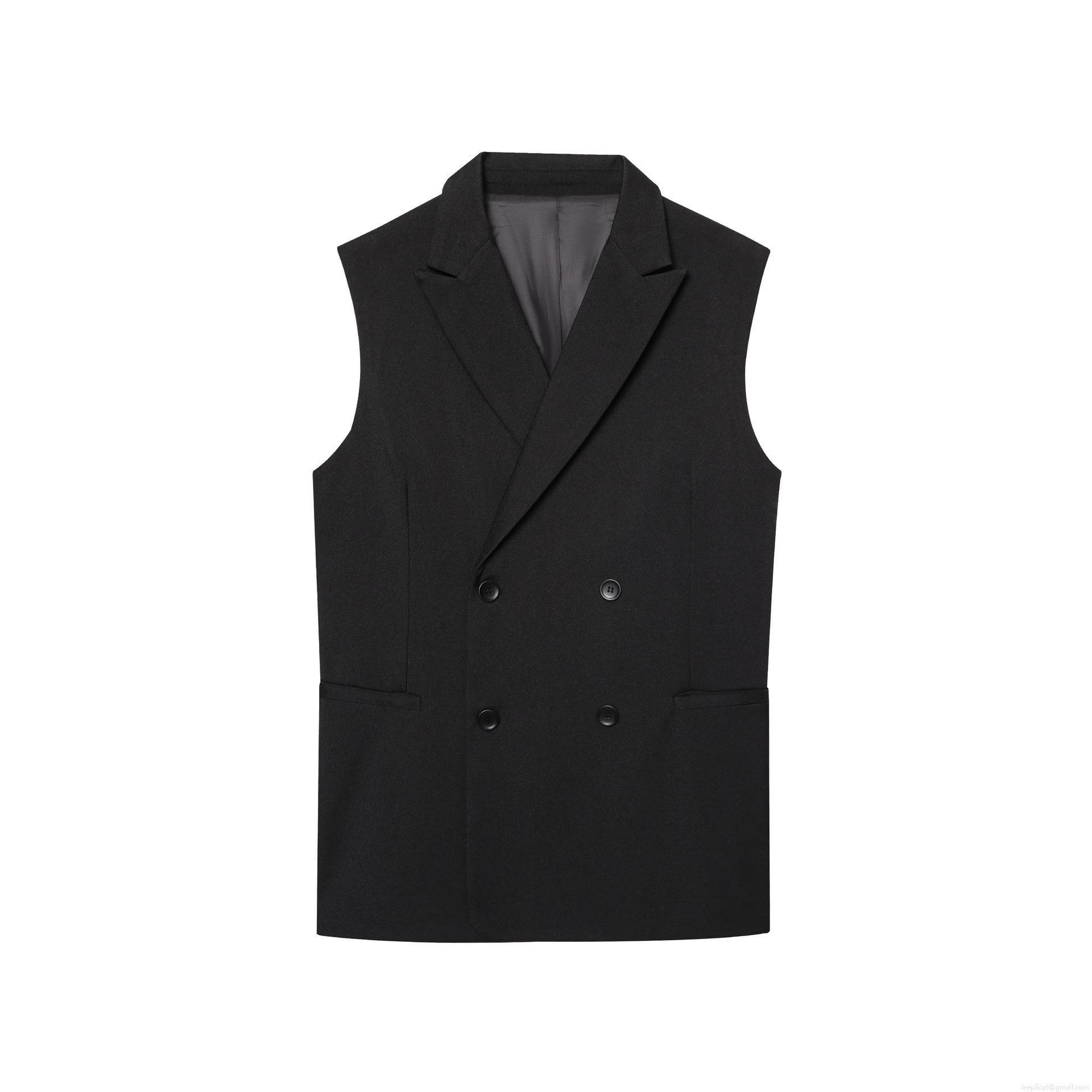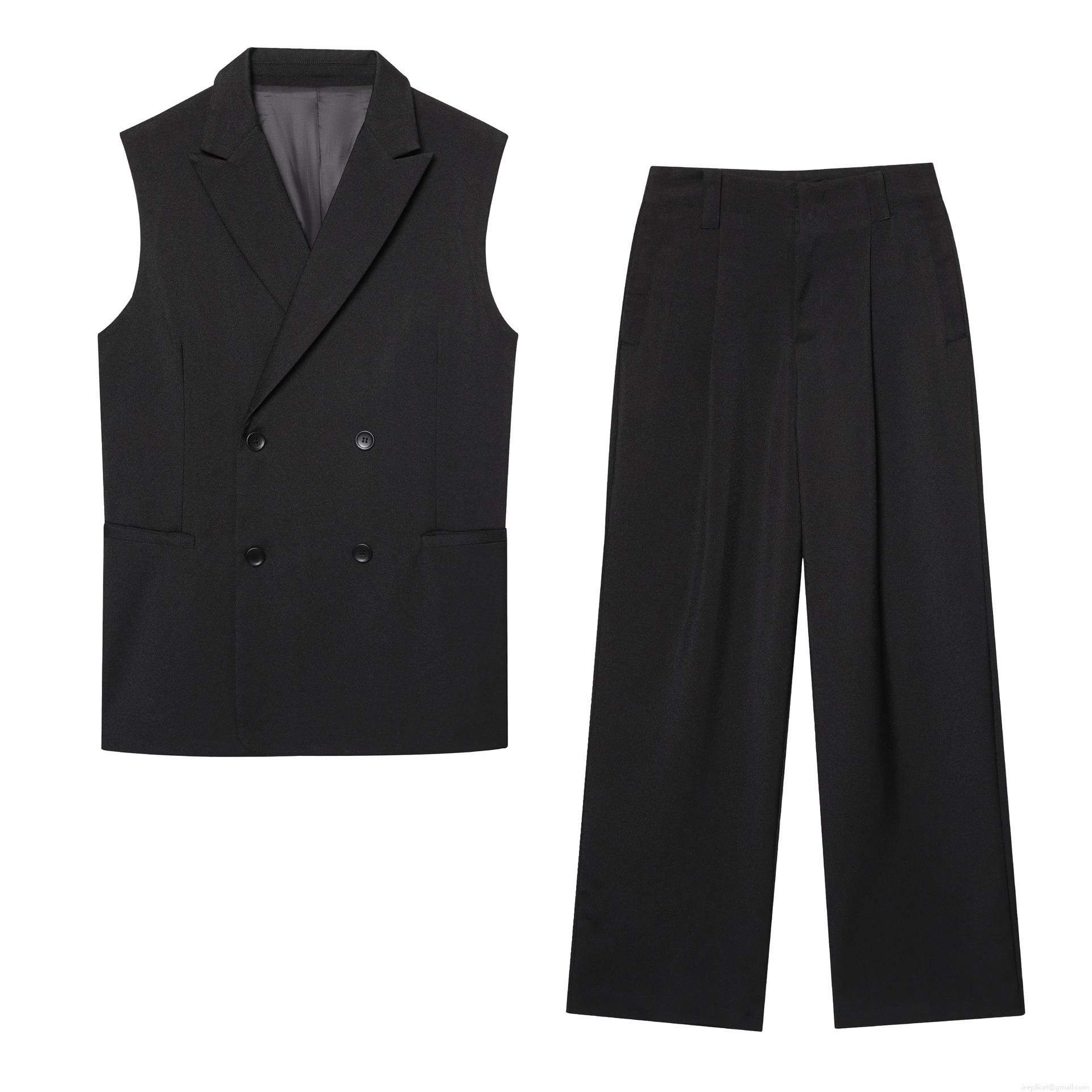 • Women's 2 Piece Office Suit Set Sleeveless Double Breasted Vest Waistcoat With High Waist Wide Leg Pants Trousers Loose Casual Streetwear Outfits