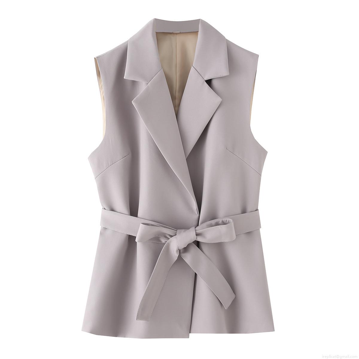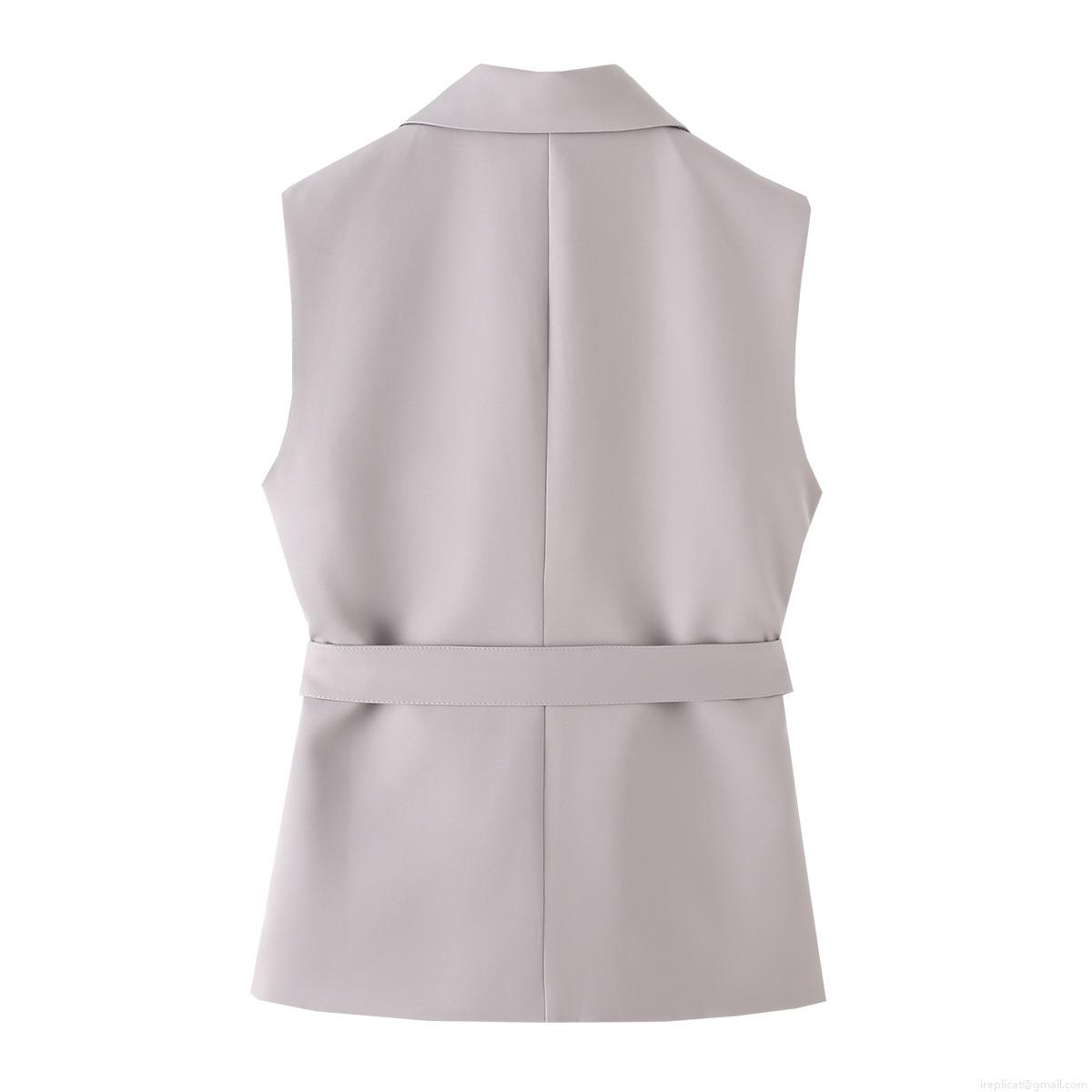 Women's 2 Piece Outfits Business Casual Belted Sleeveless Vest And High Waisted Straight Leg Pants Set Solid Color Elegant Office Workwear Suit