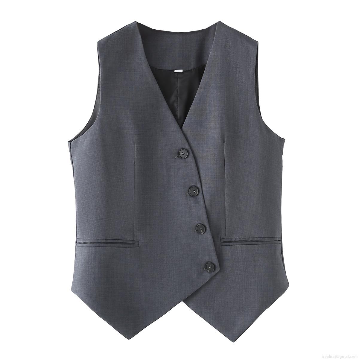 Solid Color, Splice, Pleats, Single-breasted, Asymmetrical Hem