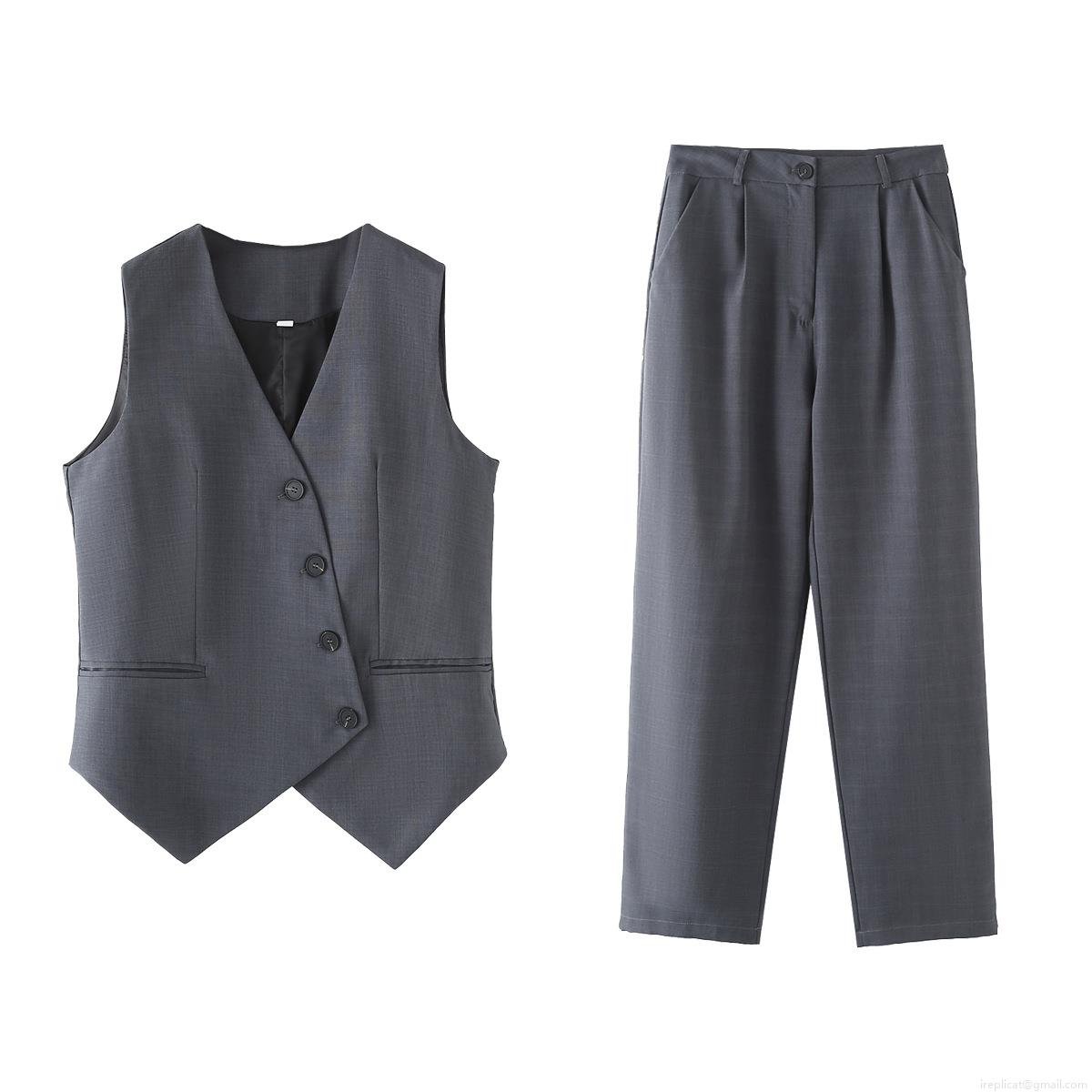 • Women's 2 Piece Outfits Business Casual V Neck Sleeveless Vest And High Waist Straight Leg Pants Set Solid Color Slim Fit Suit For Work Streetwear