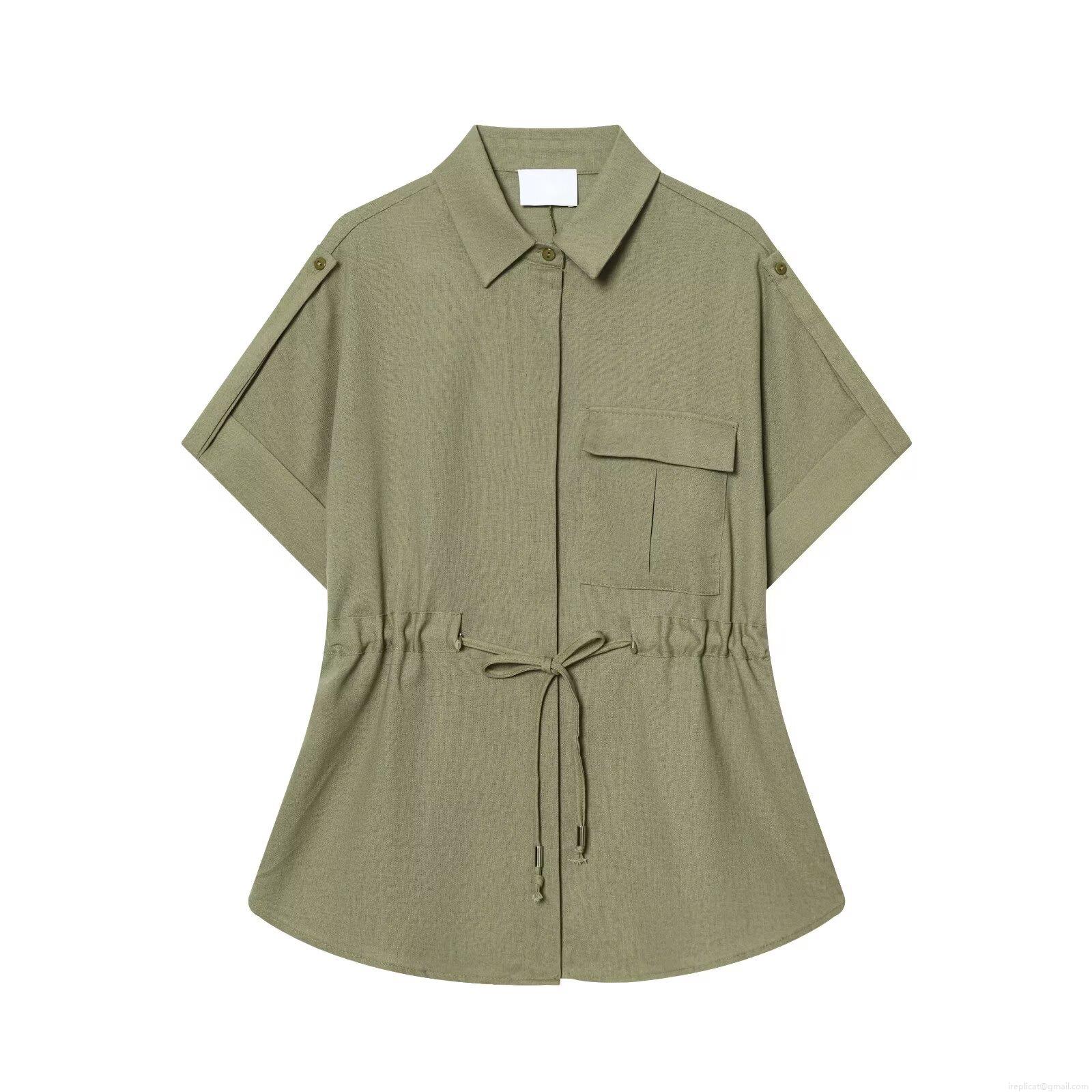 • Women's 2 Piece Outfits Casual Short Sleeve Lapel Button Down Shirt with High Waist Wide Leg Pants Set Solid Color Utility Workwear Style Streetwear for Women