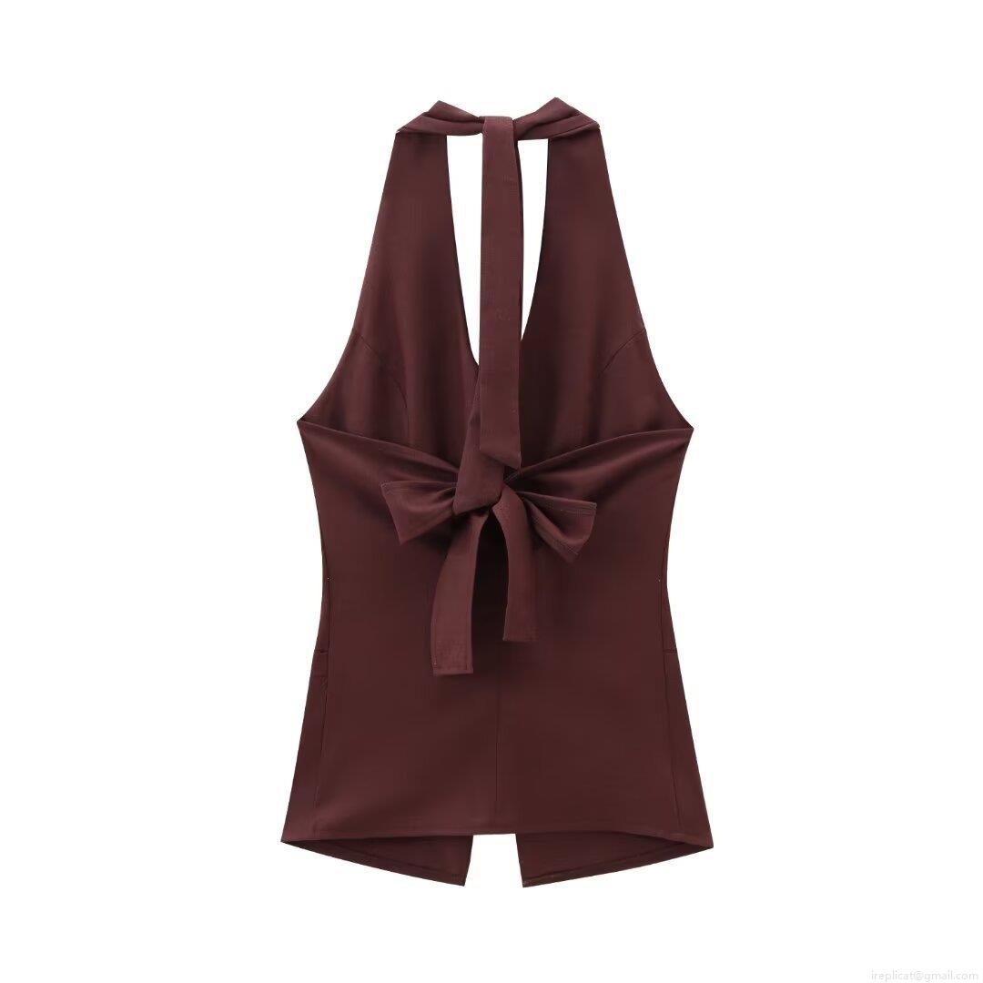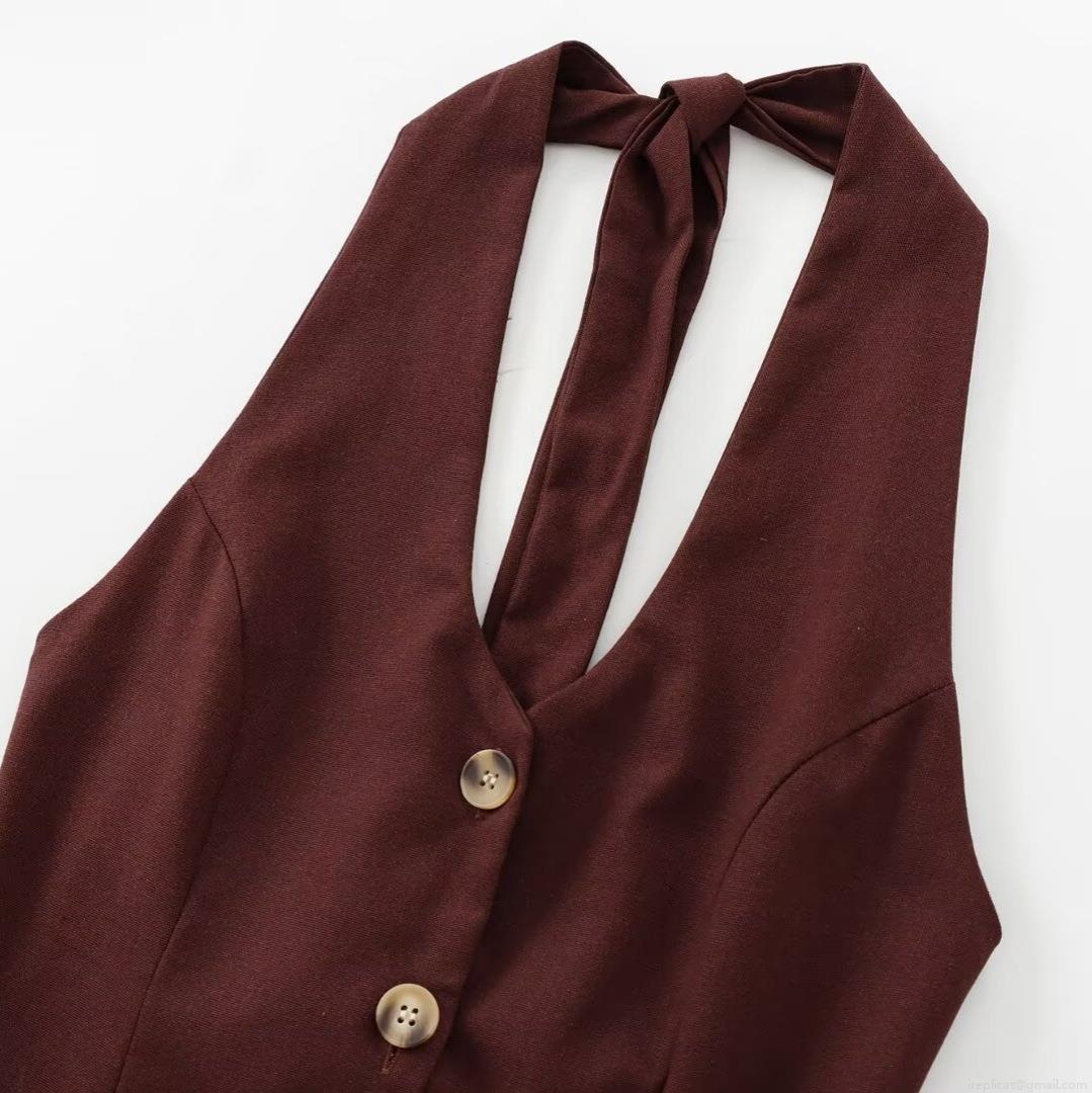 • Women's 2 Piece Outfits Halter Neck Button Down Vest And High Waisted Wide Leg Pants Set Cotton Linen Blend Sleeveless Solid Color Summer Beach Vacation Pants Suit