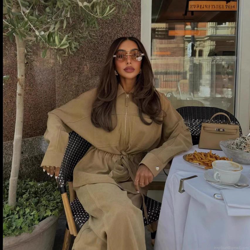 • Women's 2 Piece Outfits Polyester Twill Brushed Lapel Zip Up Jacket and Wide Leg Pants Set Casual Utility Adjustable Waist Streetwear Tracksuits For Women