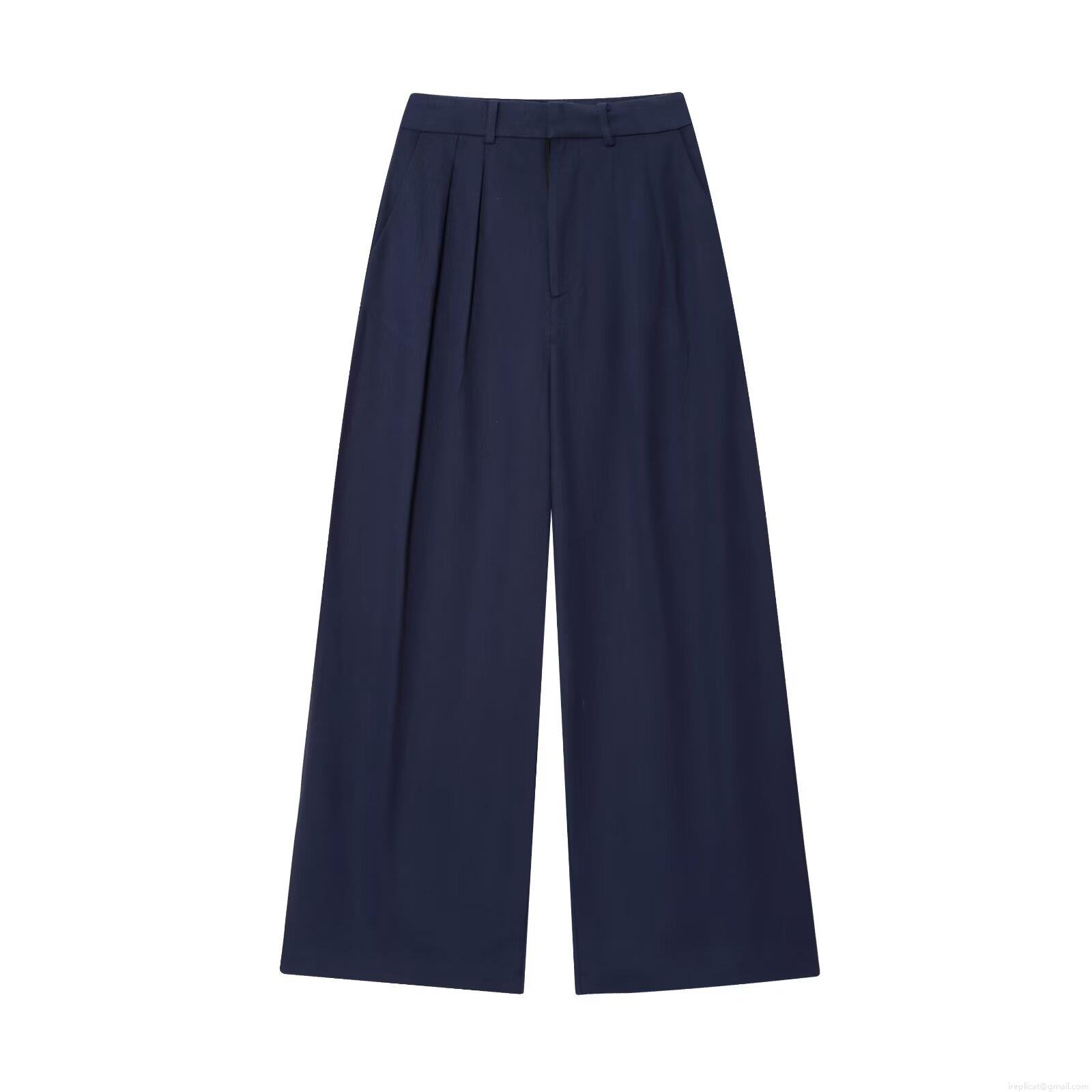Solid Color, Pleats, Double-breasted, Wide-leg, High-waisted