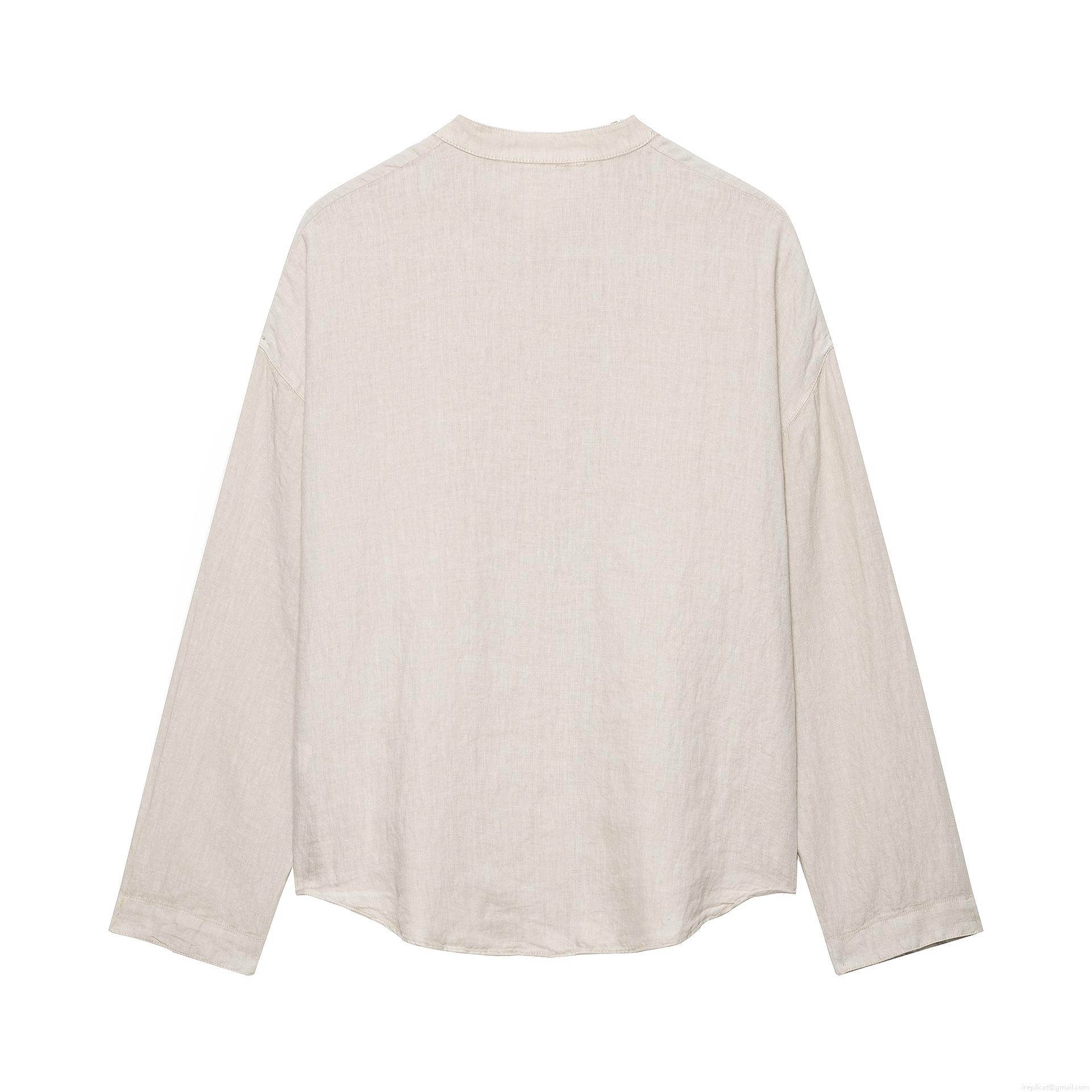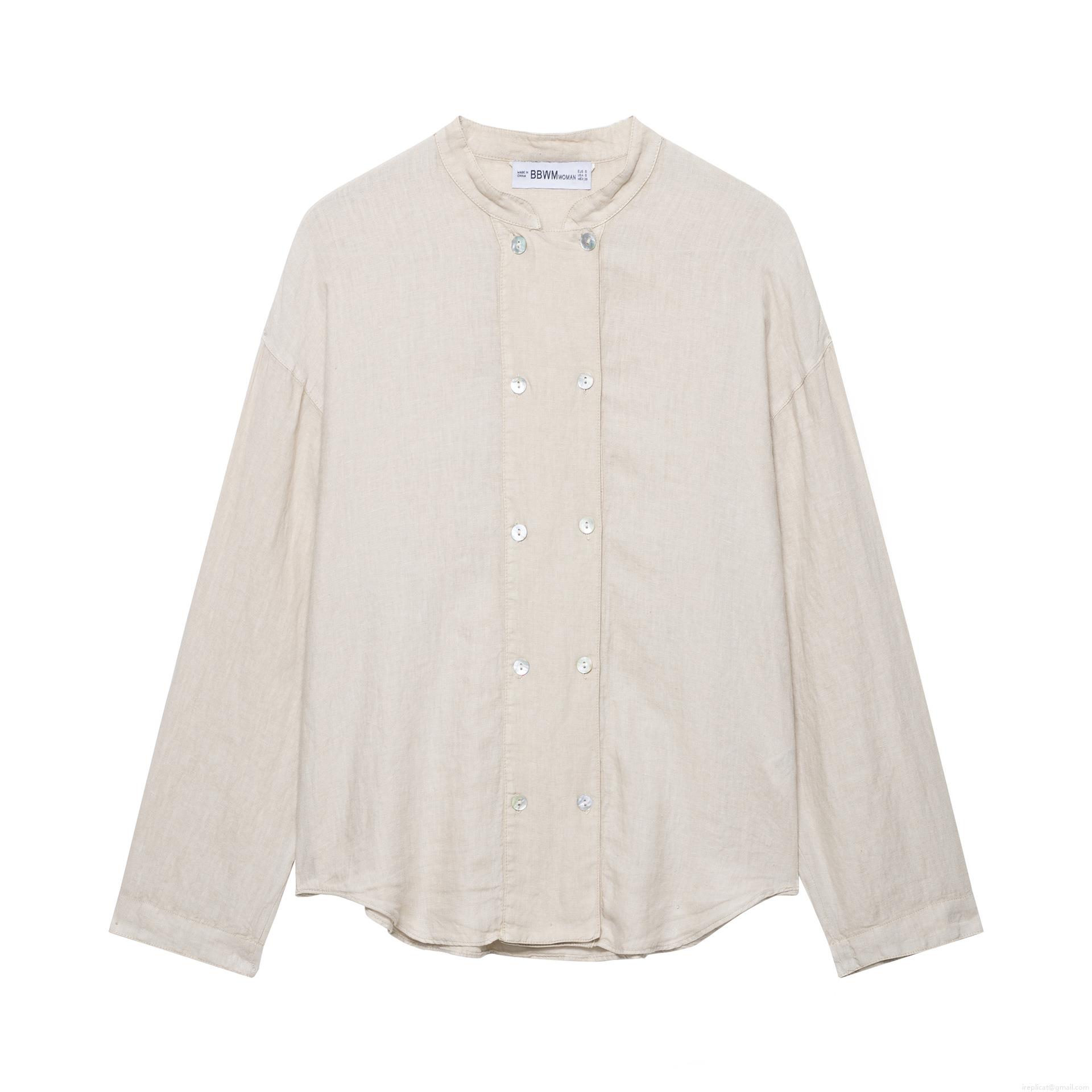 • Women's 2 Piece Pants Outfits Sets Linen Texture Long Sleeve Double Breasted Stand Collar Shirt And Wide Leg High Waist Pants Casual Minimalist Streetwear Suit