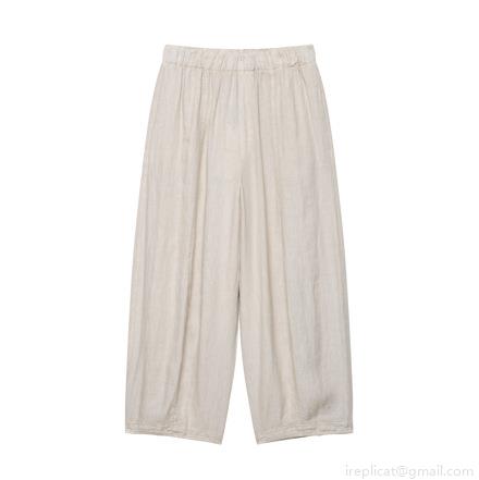 Solid Color, Elastic Waistband, Wide-leg Pants, Stand-up Collar, Double-breasted, Linen Texture