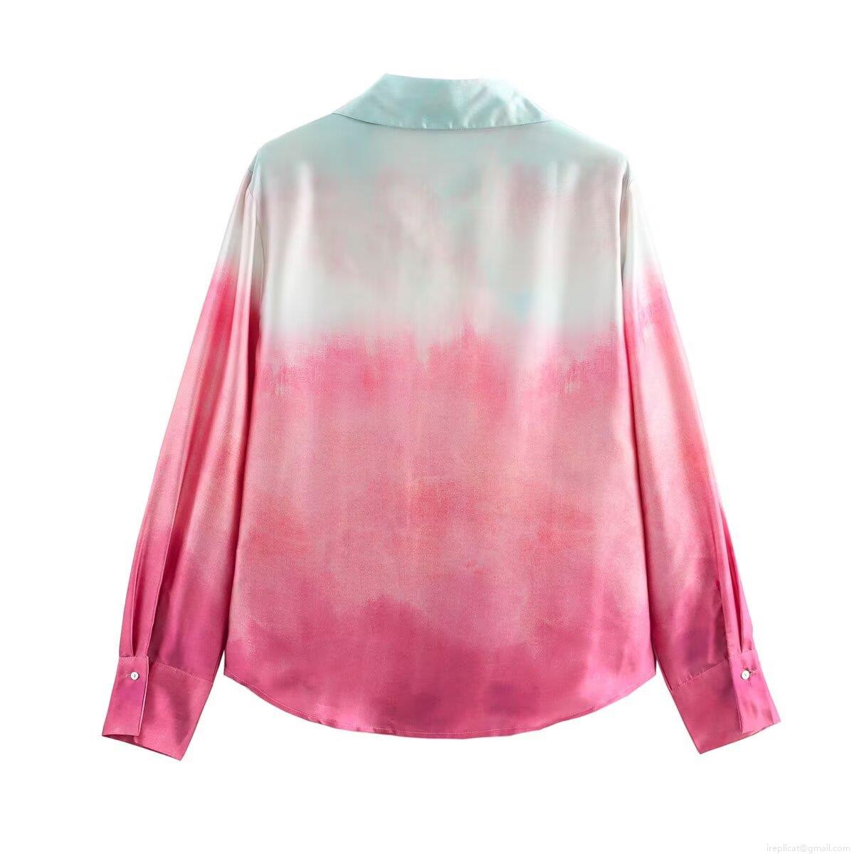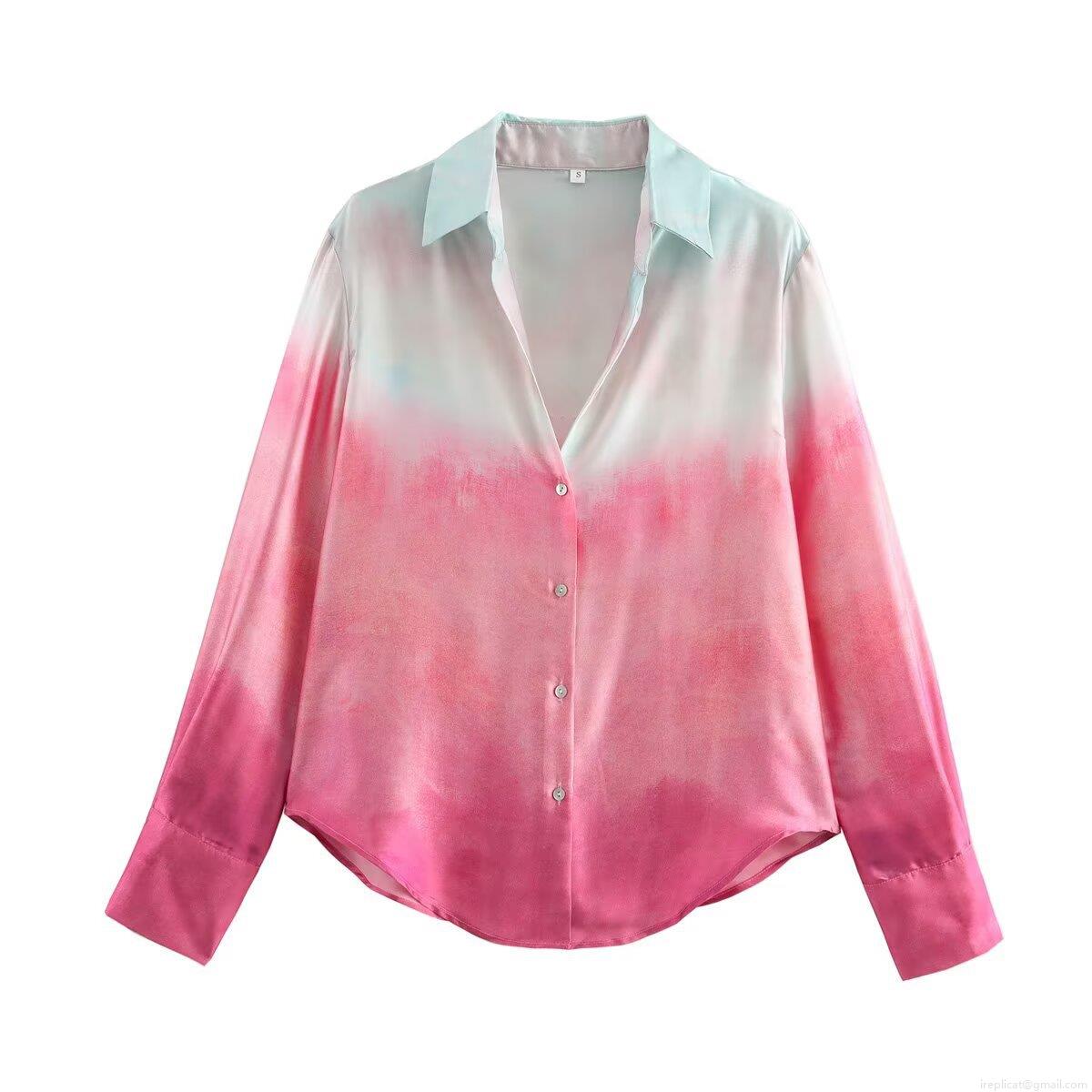 • Women's 2 Piece Pants Set Gradient Tie Dye Print Long Sleeve Lapel Button Up Shirt And High Waist Wide Leg Straight Trousers Satin Silk Feel Casual Vacation Streetwear Outfit