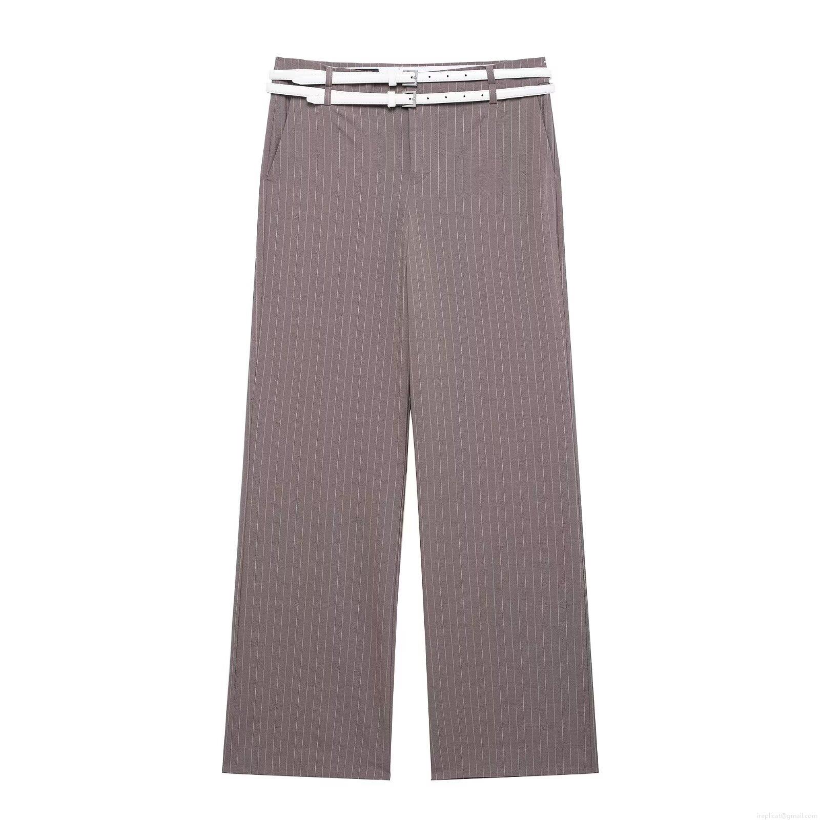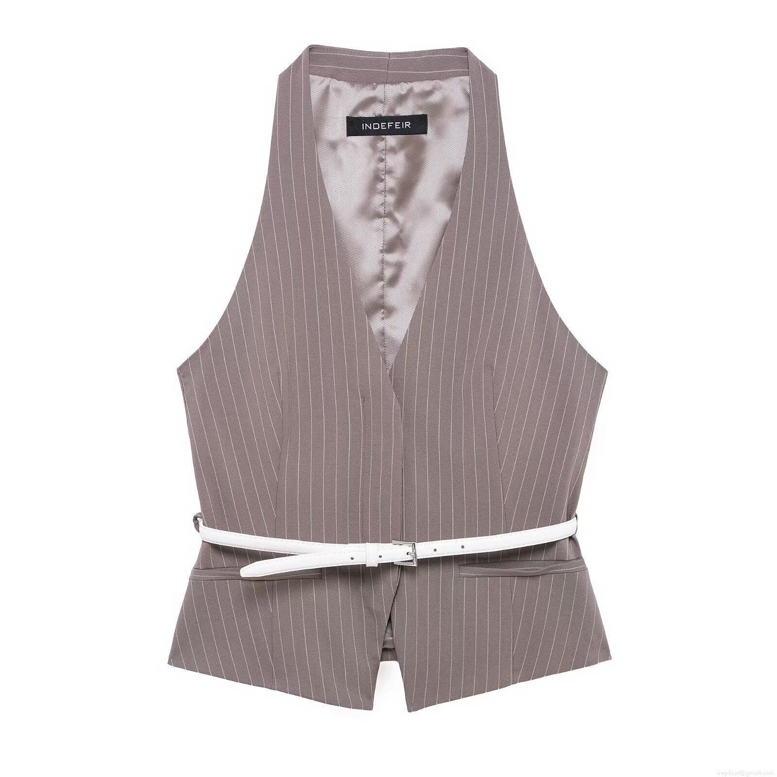 Women's 2 Piece Pinstripe Set Elegant Halter Neck Vest Waistcoat with Belt and High Waist Straight Wide Leg Trousers for Office Business Party Streetwear Outfit